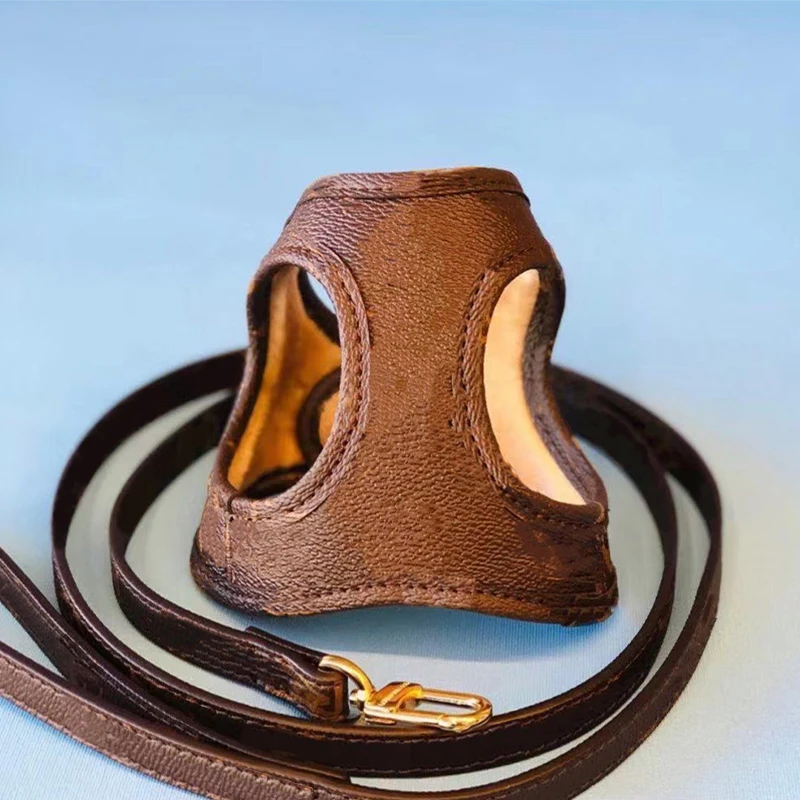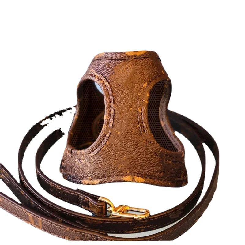Дизайнерский комплект из ошейника и поводка для собак, роскошный набор поводков для собак, модный кожаный нагрудный ремень с принтом французского бульдога шнауцера