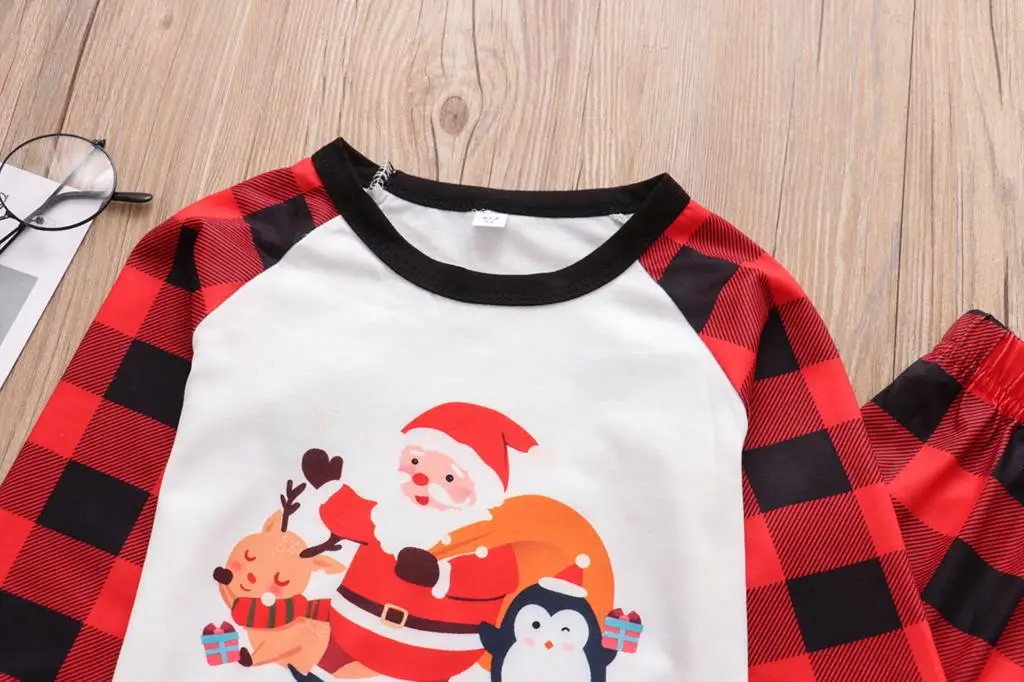 2021 рождественские Семейные пижамы, комплект для папы, мамы, ребенка, Санта Клауса, пингвина, Рождественская елка, топ + штаны, семейная одежда для сна Pj's