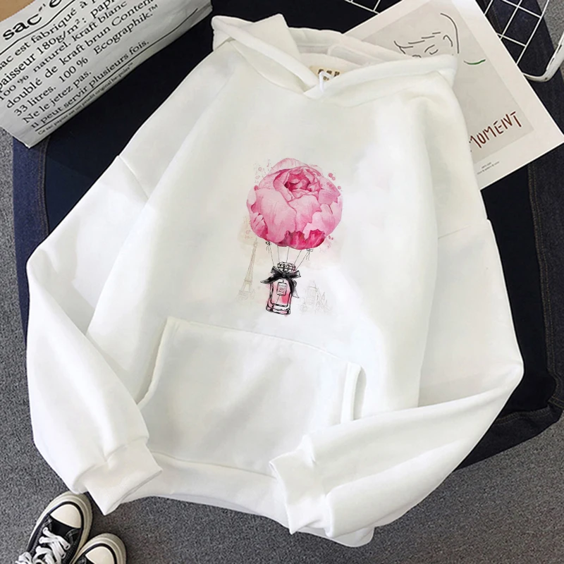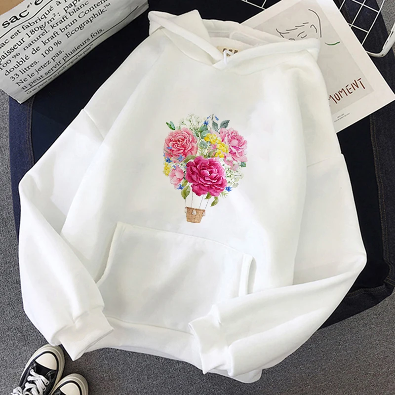 Женская толстовка с капюшоном, модная уличная одежда с цветочным принтом, пуловер с длинным рукавом, повседневная женская одежда в стиле Харадзюку на осеньзиму, Свитшот