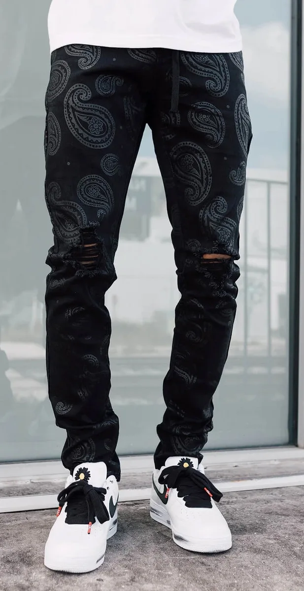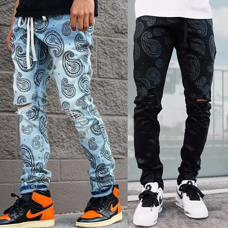 Рваные джинсы с рисунком, мужские джинсы, спортивные брюки, мужские...