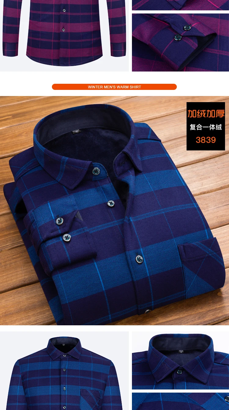 Осенне-зимняя плотная бархатная Классическая рубашка для мужчин, Повседневная теплая флисовая подкладка с длинным рукавом, модные мягкие фланелевые фоторубашки размером 4XL