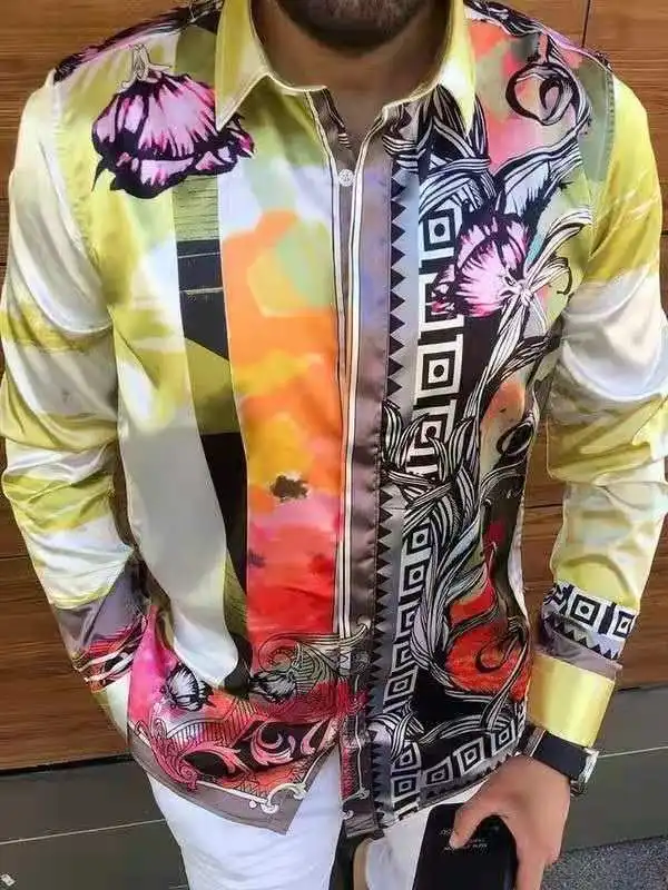 Рубашка мужская с цветочным принтом, модная сорочка с длинным рукав...