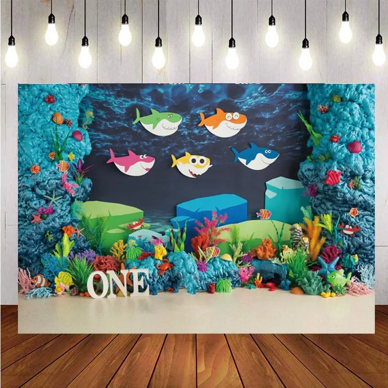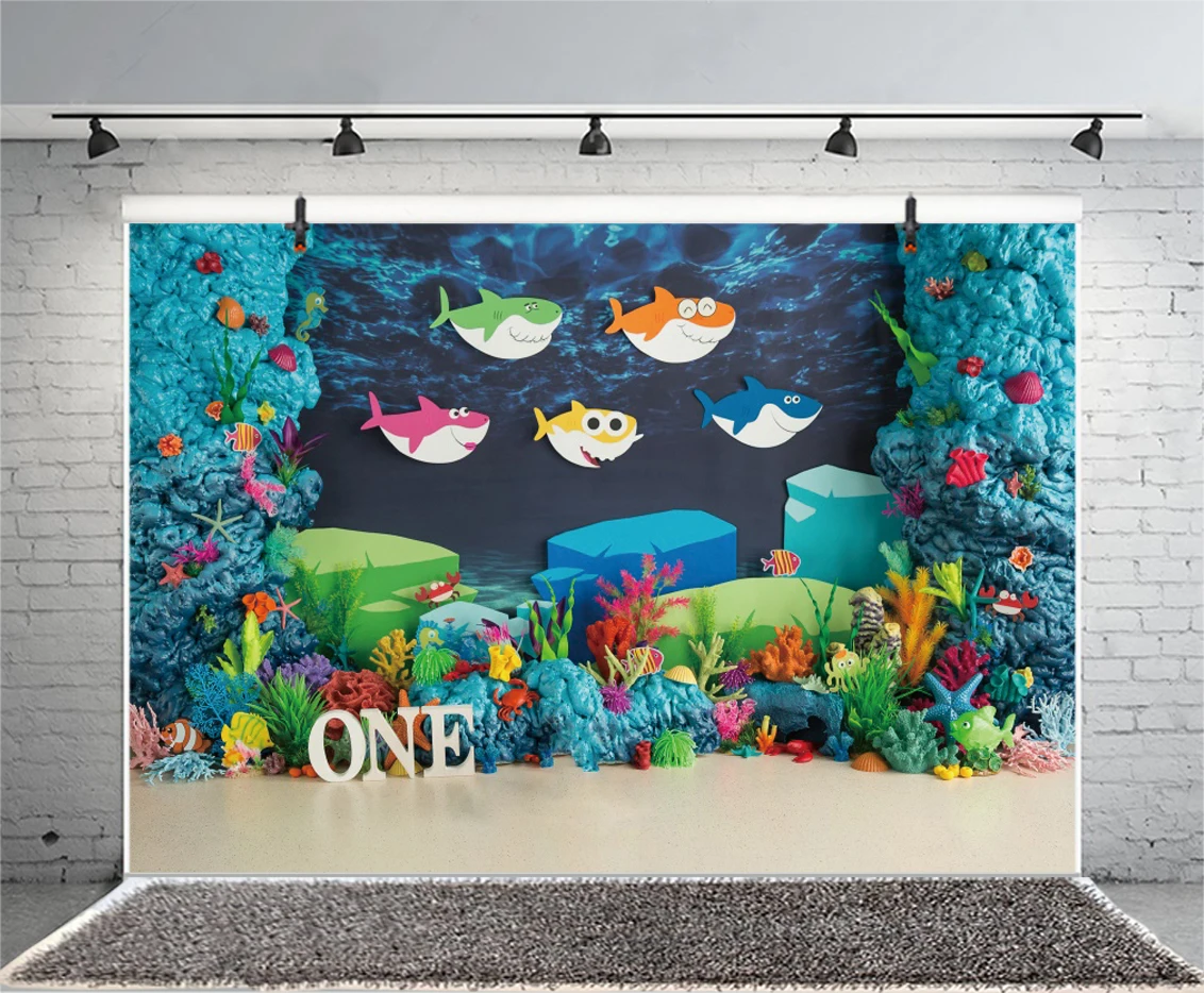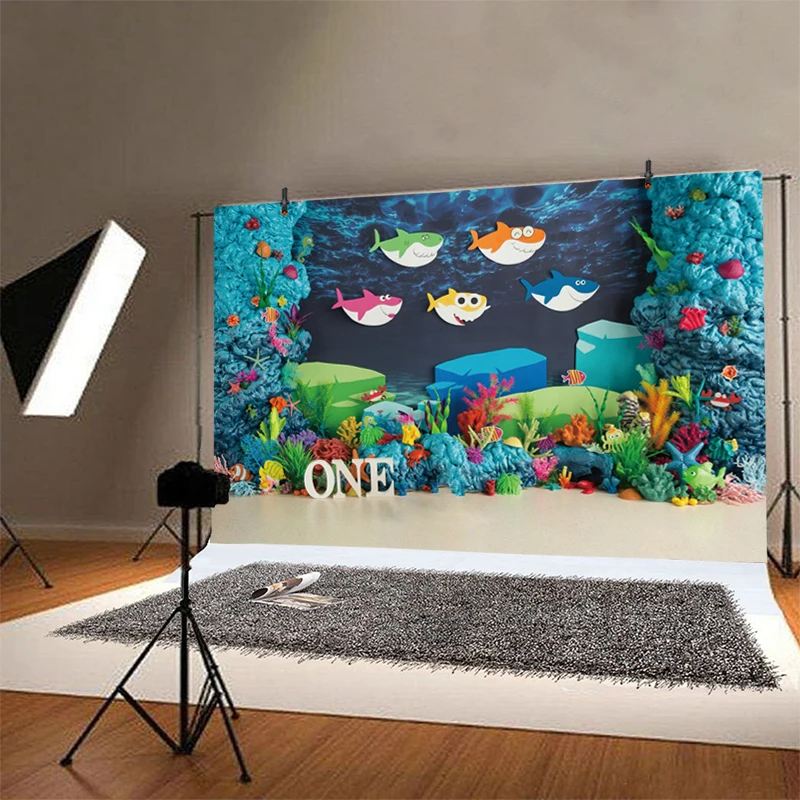 Фон для фотосъемки с изображением подводного мира Акулы в честь первого дня рождения ребенка мультяшный фон для фотостудии баннер украшение