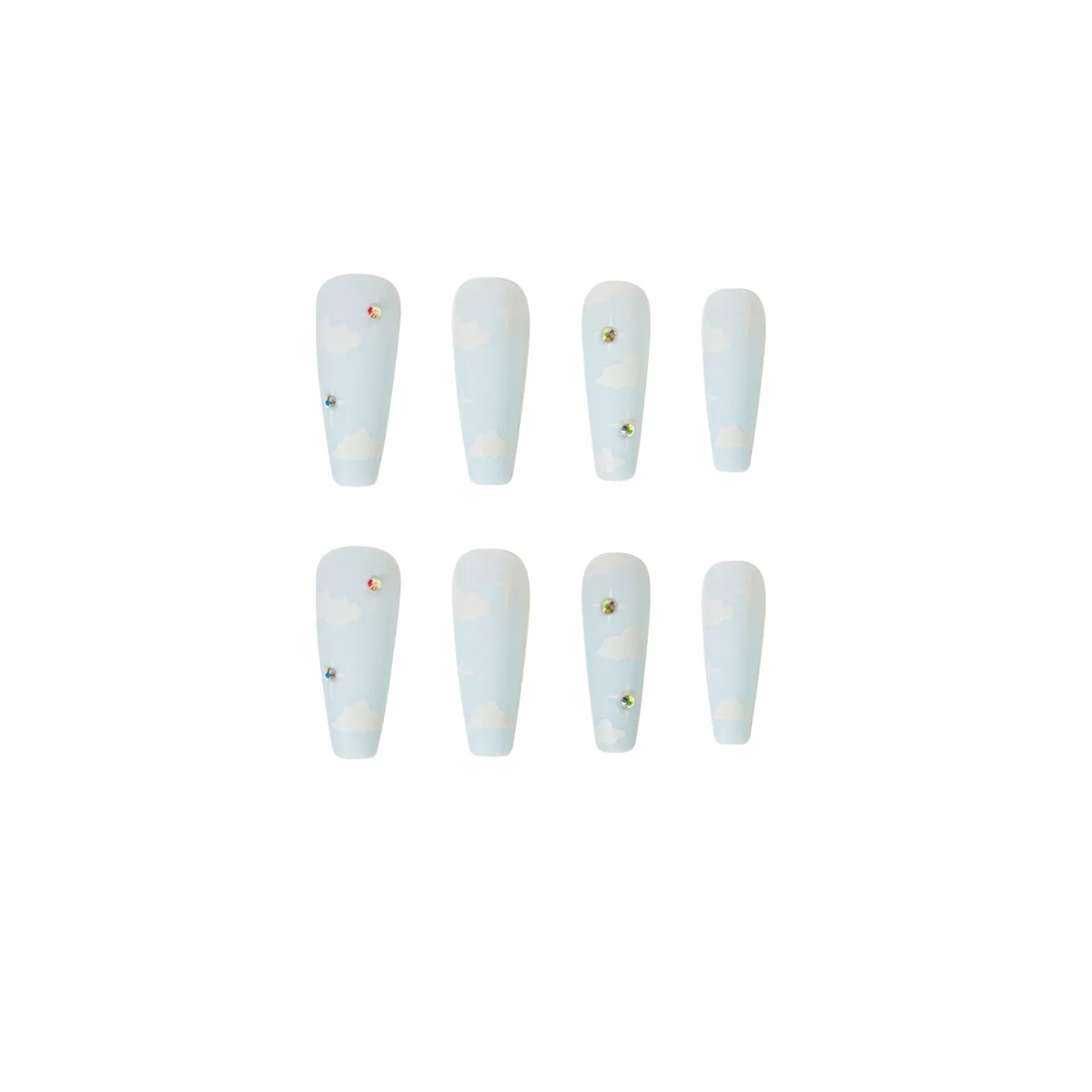 Белые накладные ногти дизайн облаков с бриллиантами длинные гвозди ...