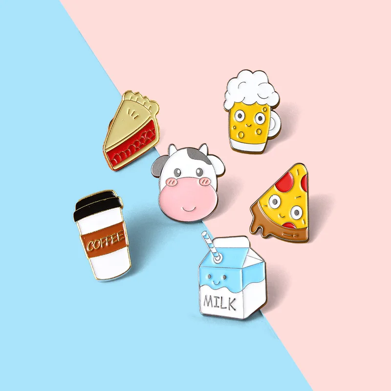 Мультяшные эмалевые булавки с едой, Милые Броши в виде молока, кофе...
