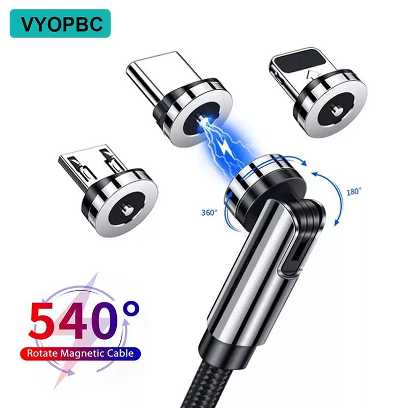 Магнитный кабель VYOPBC, вращающееся магнитное зарядное устройство Micro USB C, кабель Type C для iPhone 12, Xiaomi Poco, шнур для быстрой зарядки телефона