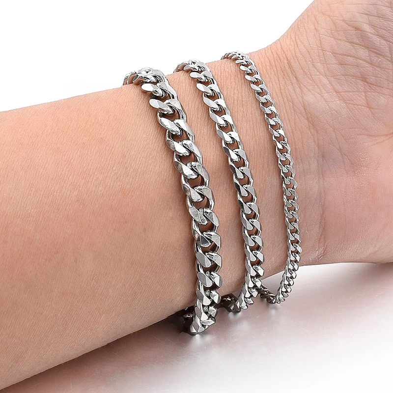 Ожерелье из нержавеющей стали в стиле панк для мужчин и женщин, украшения в стиле хип-хоп, цепочка с кубинскими звеньями на шею, Чокеры шириной 3/5/7 мм, классический однотонный металл