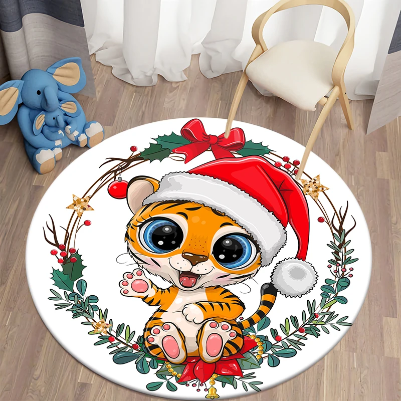 Милый декоративный ковер с принтом животных, рождественские коврики, круглый ковер для гостиной, напольный коврик, нескользящий коврик для детей