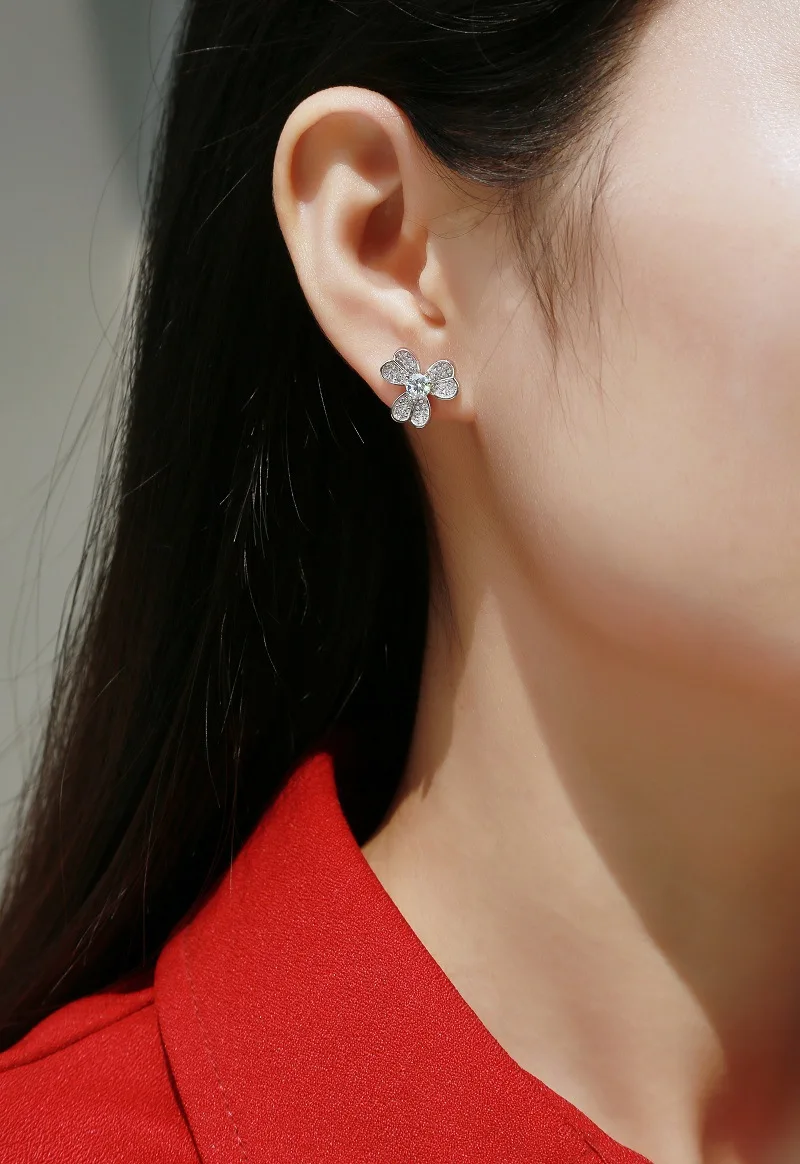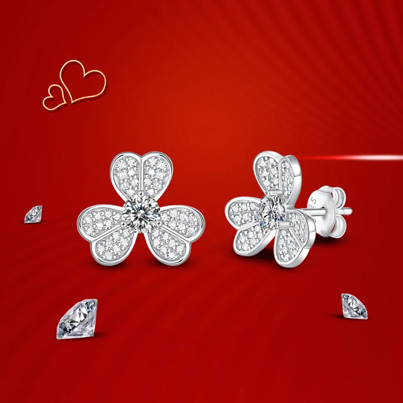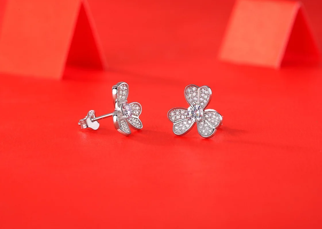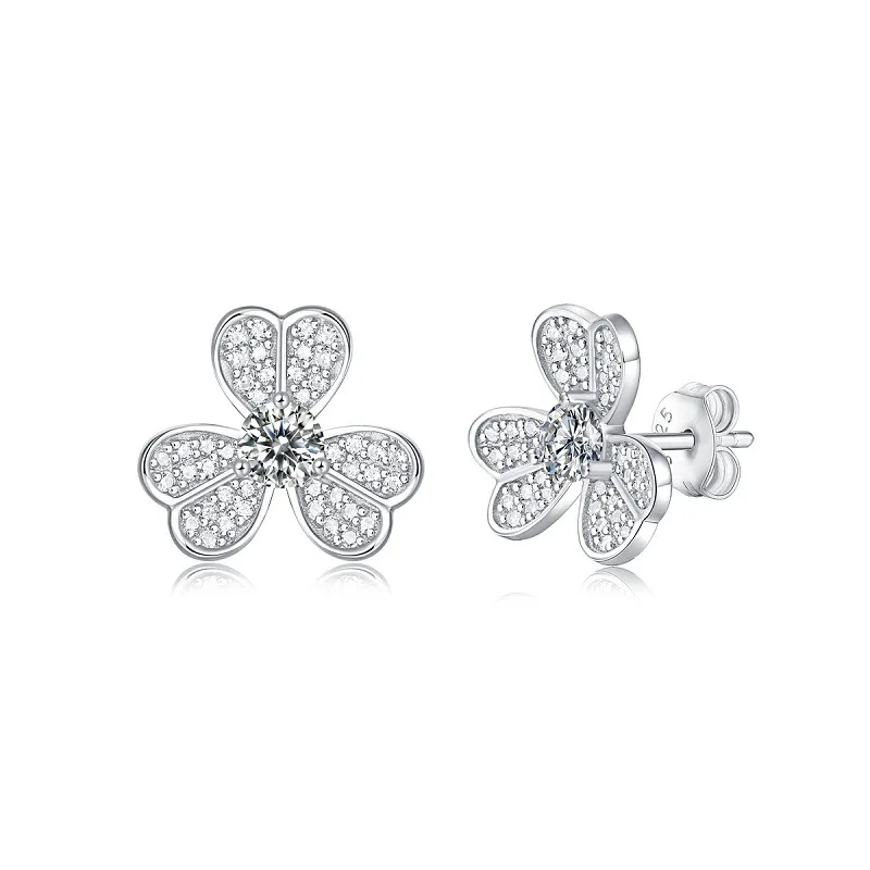 Серьги-гвоздики женские из серебра 925 пробы с 3 листьями