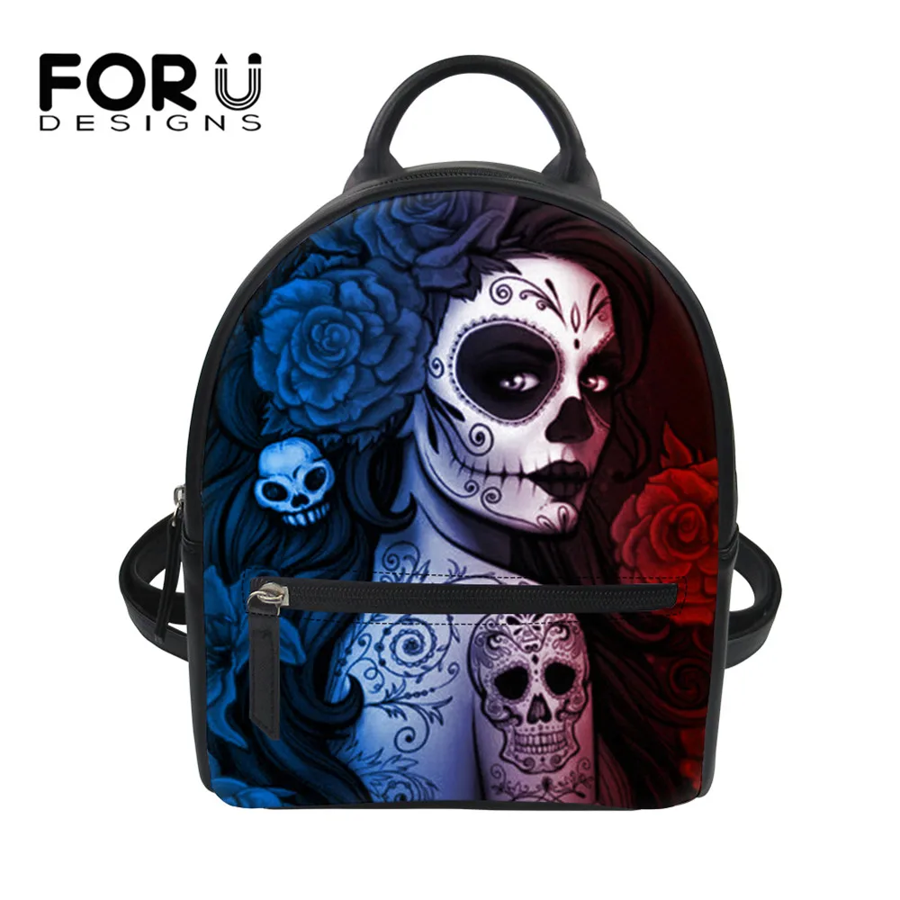 Маленький кожаный рюкзак FORUDESIGNS для женщин, 1 шт., винтажный Модный дизайнерский дорожный рюкзак с черепом в готическом стиле, с молнией, повседневный рюкзак
