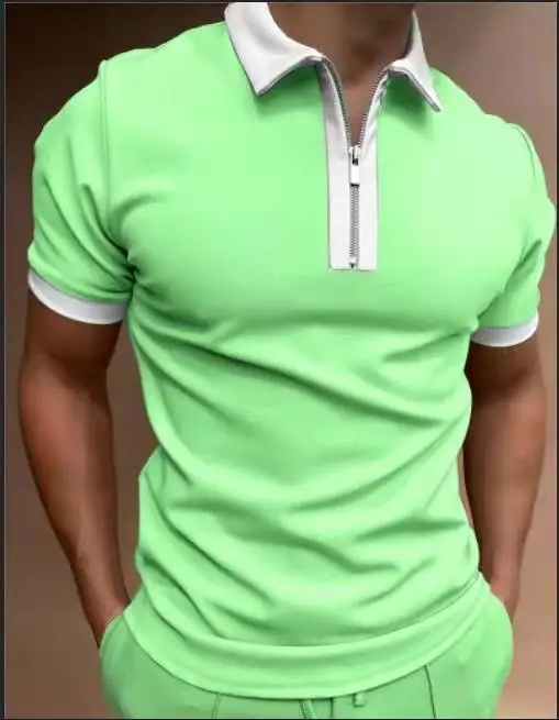 Мужская рубашка-поло на молнии, с коротким рукавом и отложным ворот...