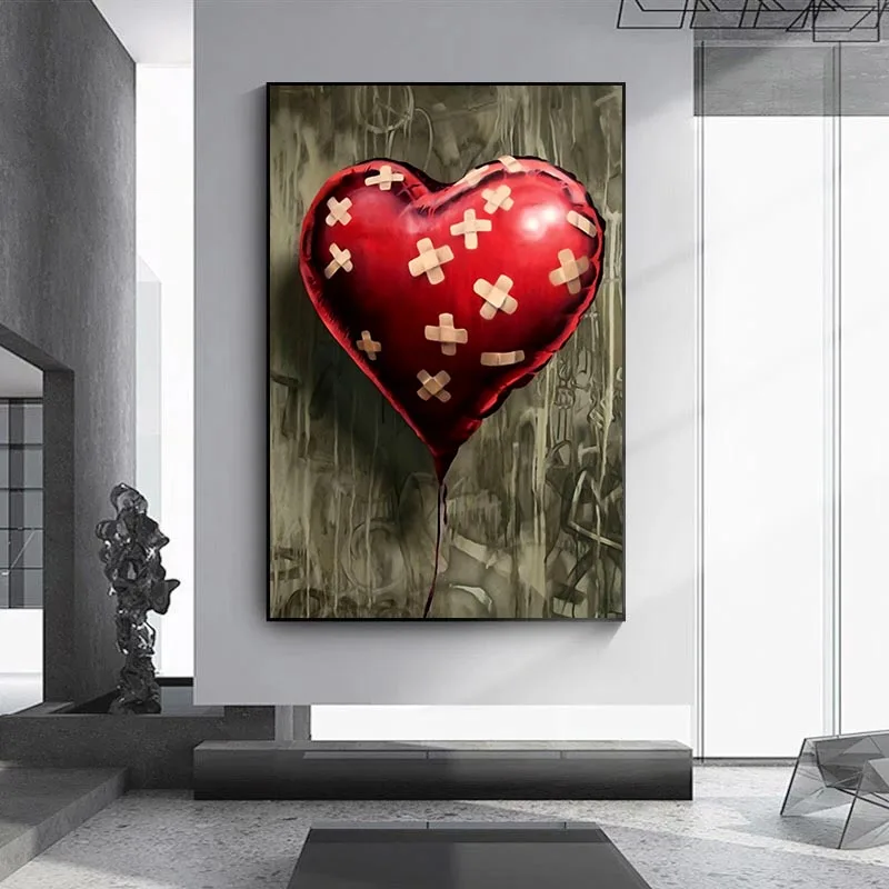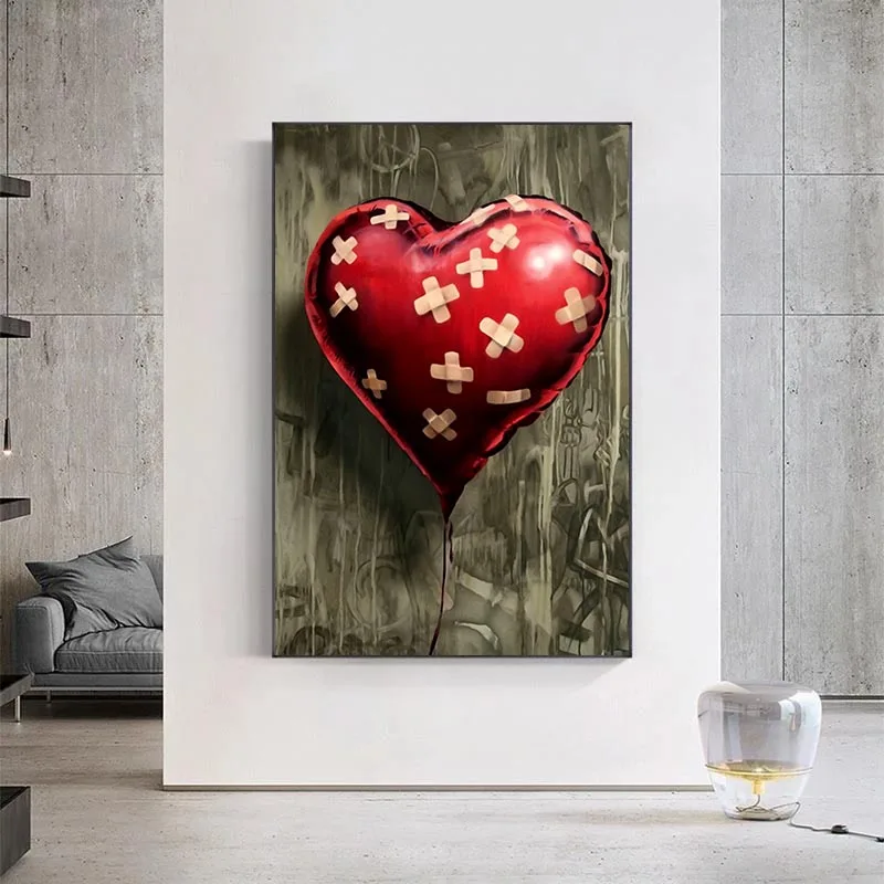 Бэнкси сердце воздушный шар искусство стены холст Декор художественное Искусство Большая Улица граффити поп канва картина Печать крутая кухня комната спальня дома