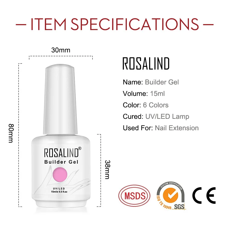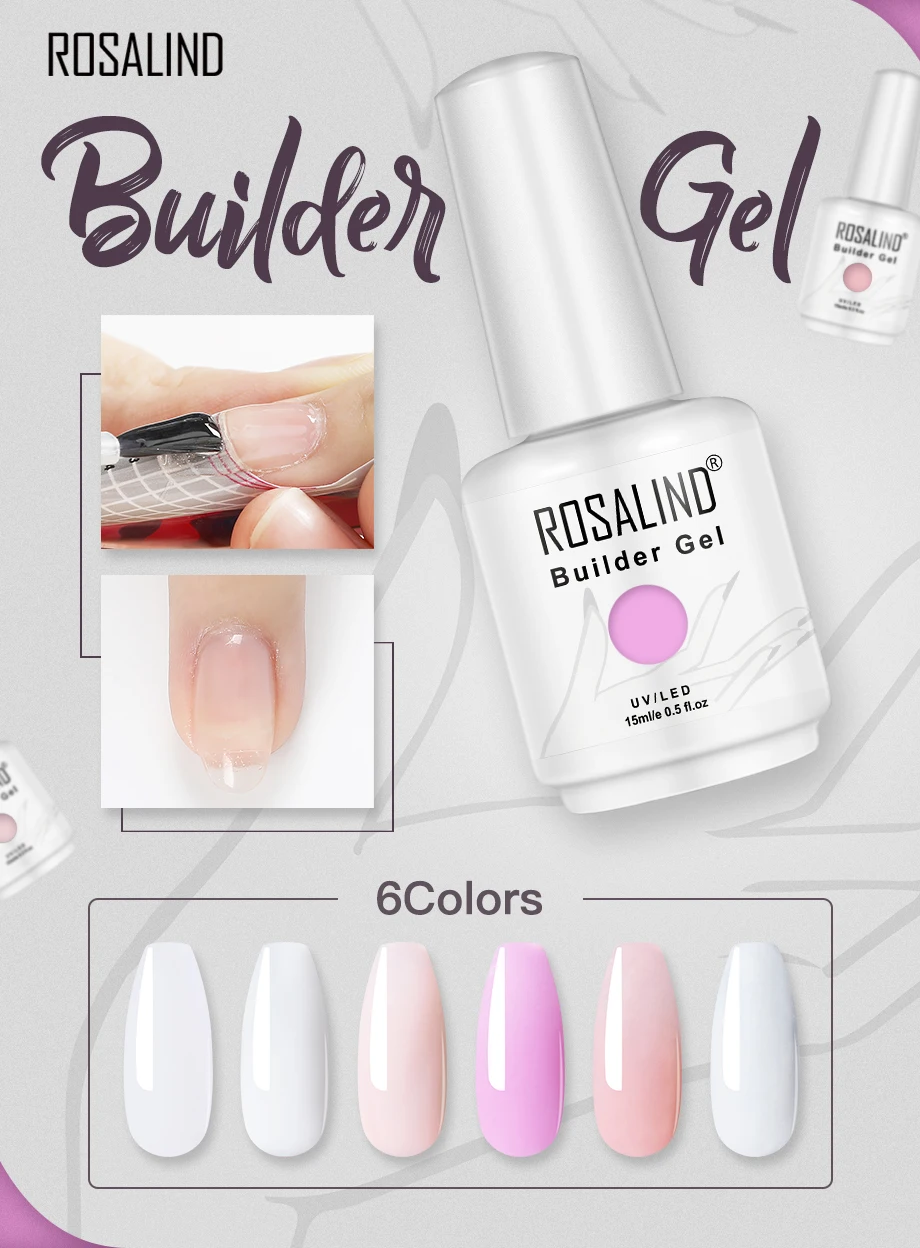 Полигель ROSALIND для ногтей гибридные длаки моделирующий гель полуперманентный УФ светодиодный маникюрный дизайн ногтей с удлиненной формой ногтей