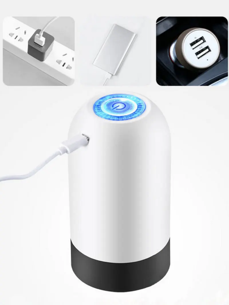 Это устройство, которое устанавливается на бутыли с водой. Помпа позволяет без применения какого-то серьезного физического усилия набрать воду. Приспособление оснащено встроенным аккумулятором, который перезаряжается с помощью кабеля USB, поставляемого в комплекте.