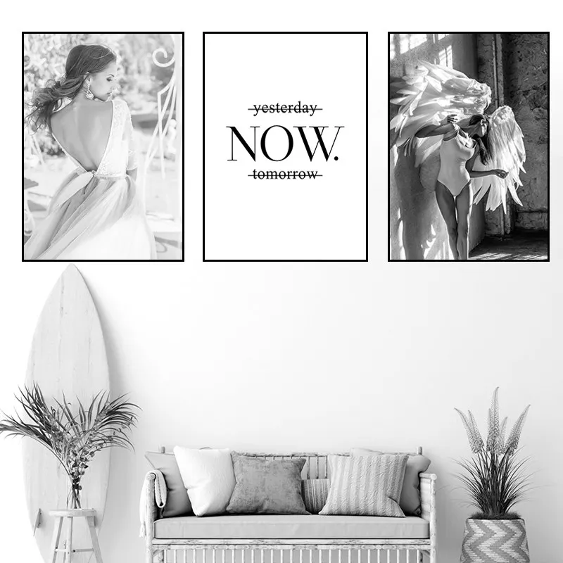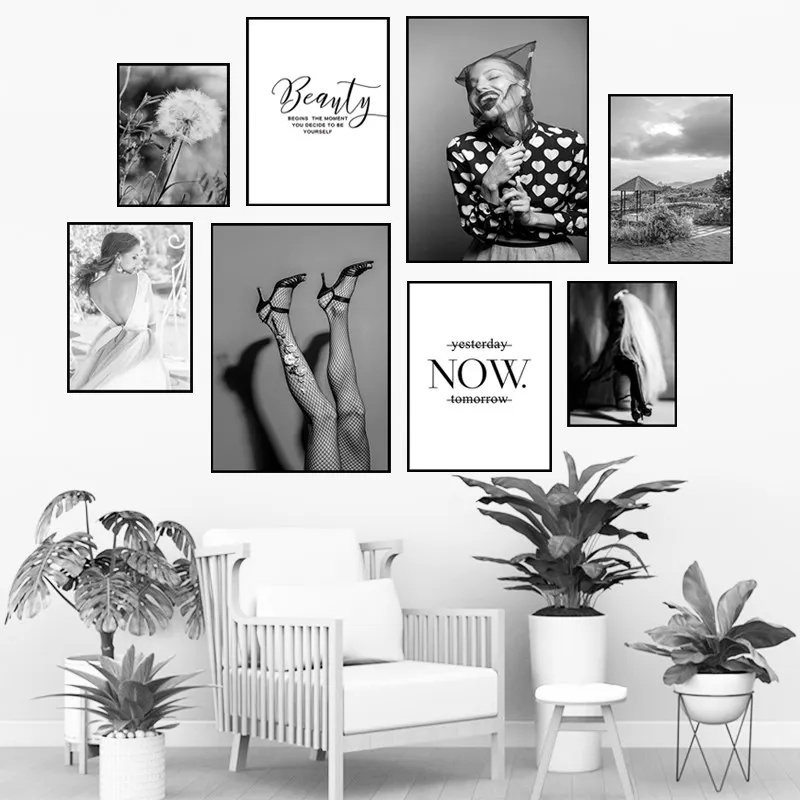 Художественный постер с изображением красивой молодой женщины девушки сейчас Цитата черный белый пейзаж Картина красивый Одуванчик Настенный декор HD0118