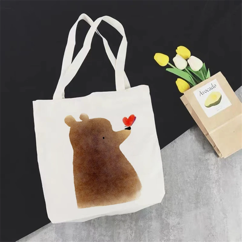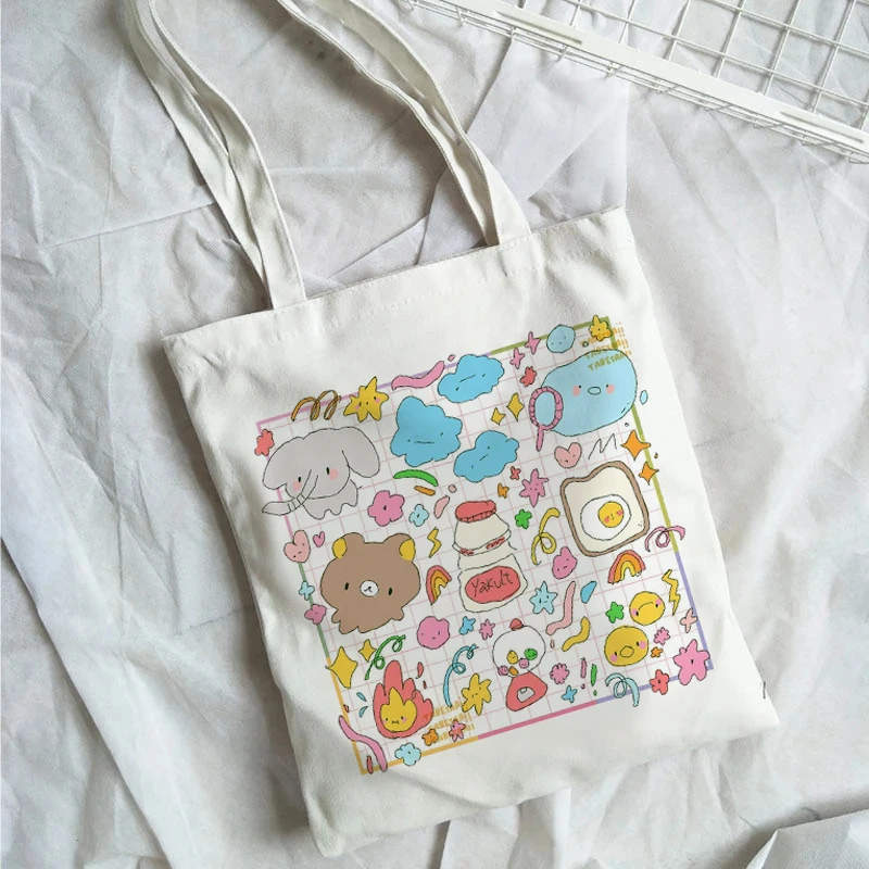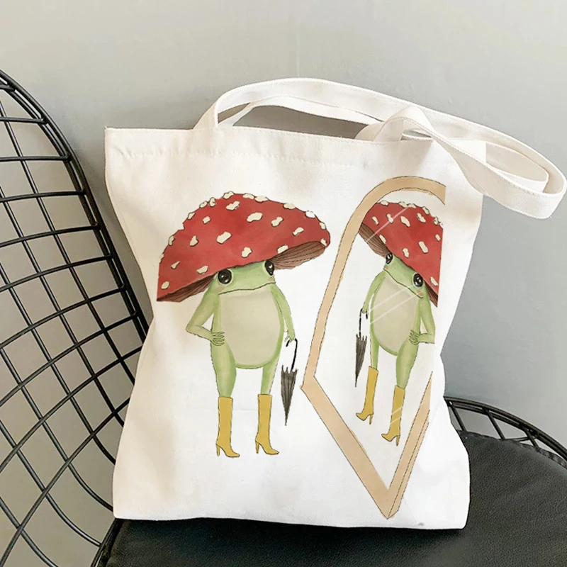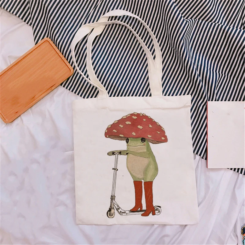Корейская шикарная Женская Холщовая Сумка Ulzzang с милым принтом лягушки, повседневная женская сумка, Большая вместительная мультяшная сумка через плечо Y2k, женские сумки для покупок