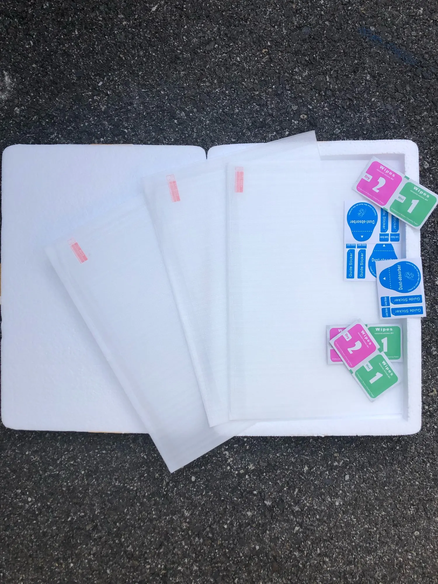 Han llegado antes de lo previsto, bien embalados y todos en perfecto estado. Solo he necesitado 1, lo he puesto a la primera y sin mucha complicacion. Durante el proceso me salio una burbuja y la pude quitar facil.