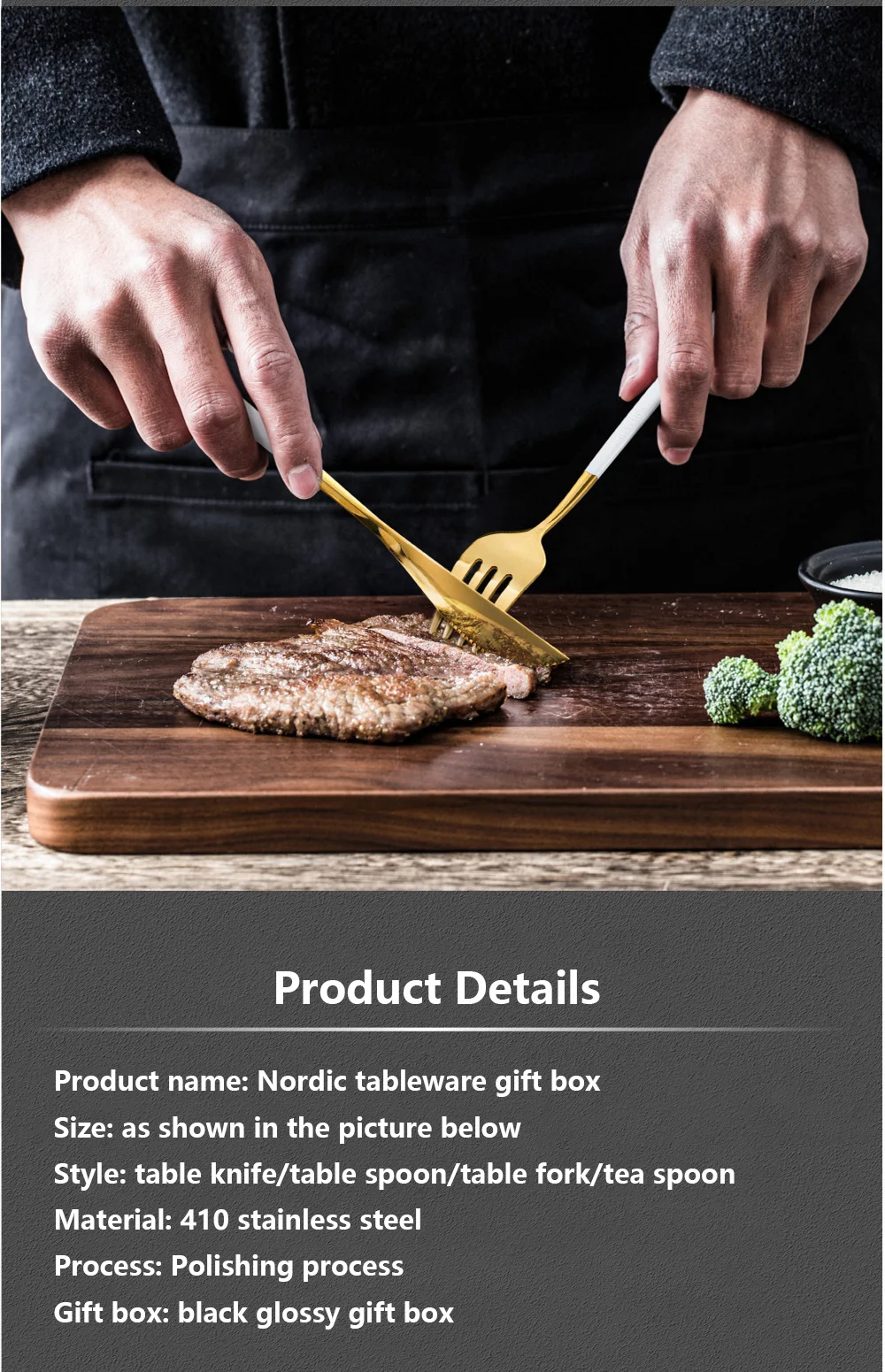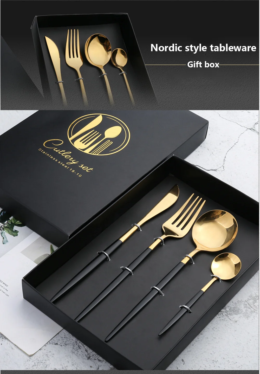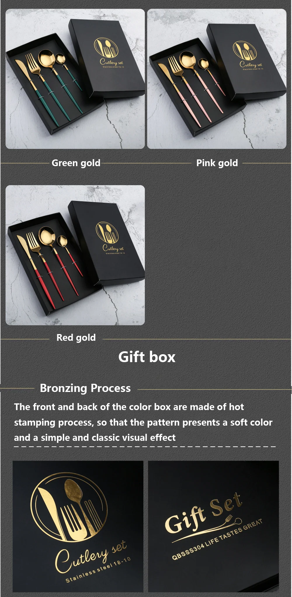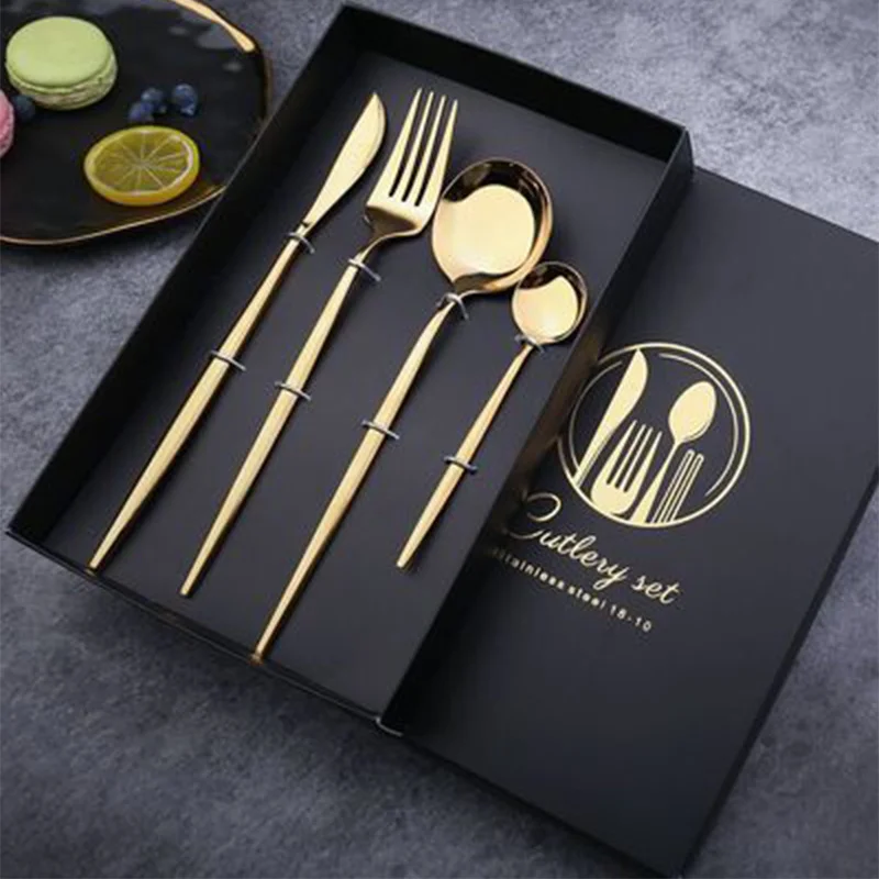 410 нержавеющая сталь, черная и Золотая посуда, Подарочная коробка, набор зеленых и золотых кухонных принадлежностей, столовая утварь, вилка, ложка