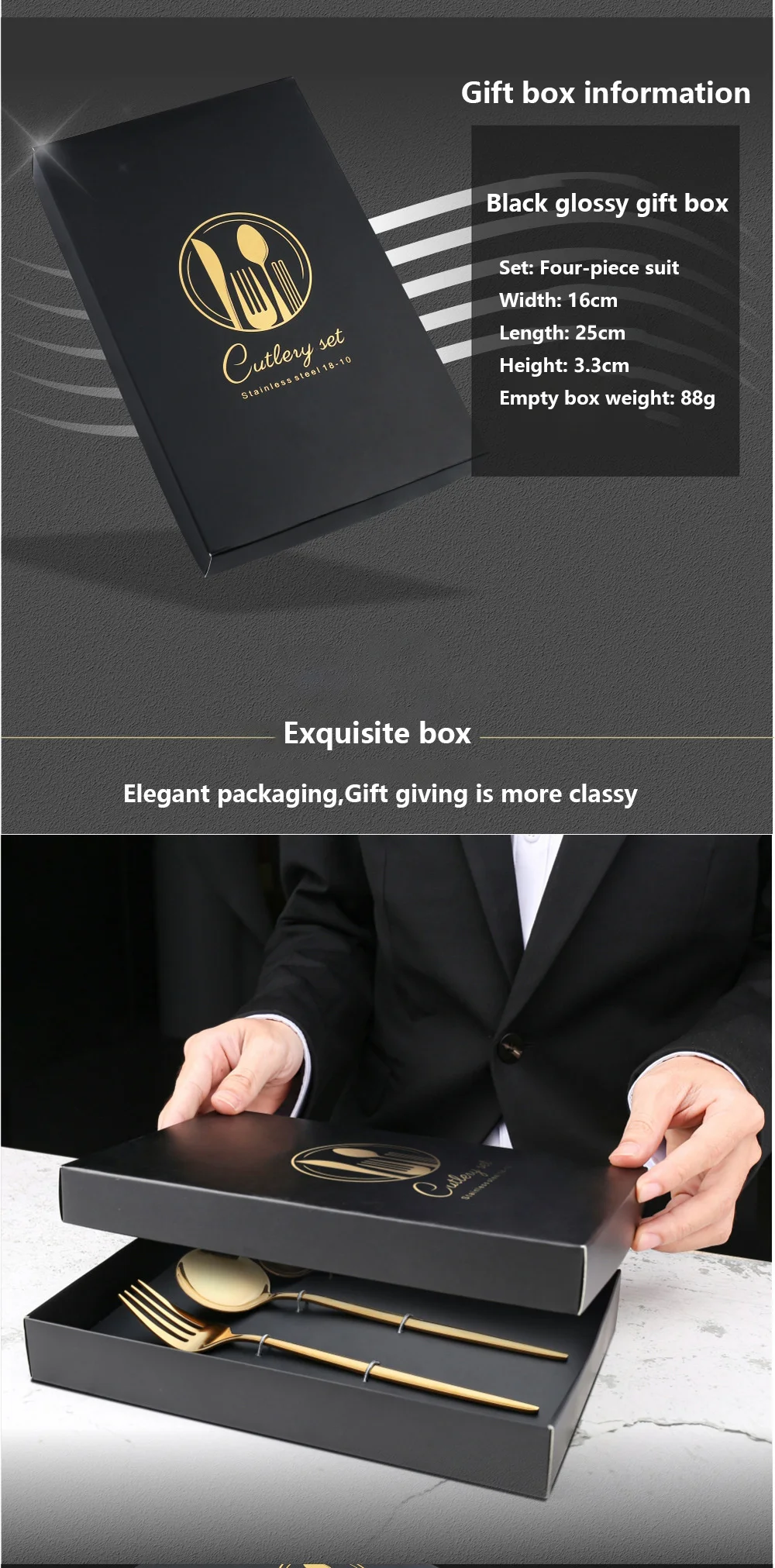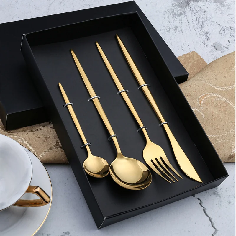 410 черная Золотая посуда из нержавеющей стали Подарочная коробка набор посуды из зеленого золота для кухонной утвари столовый нож вилка ложка