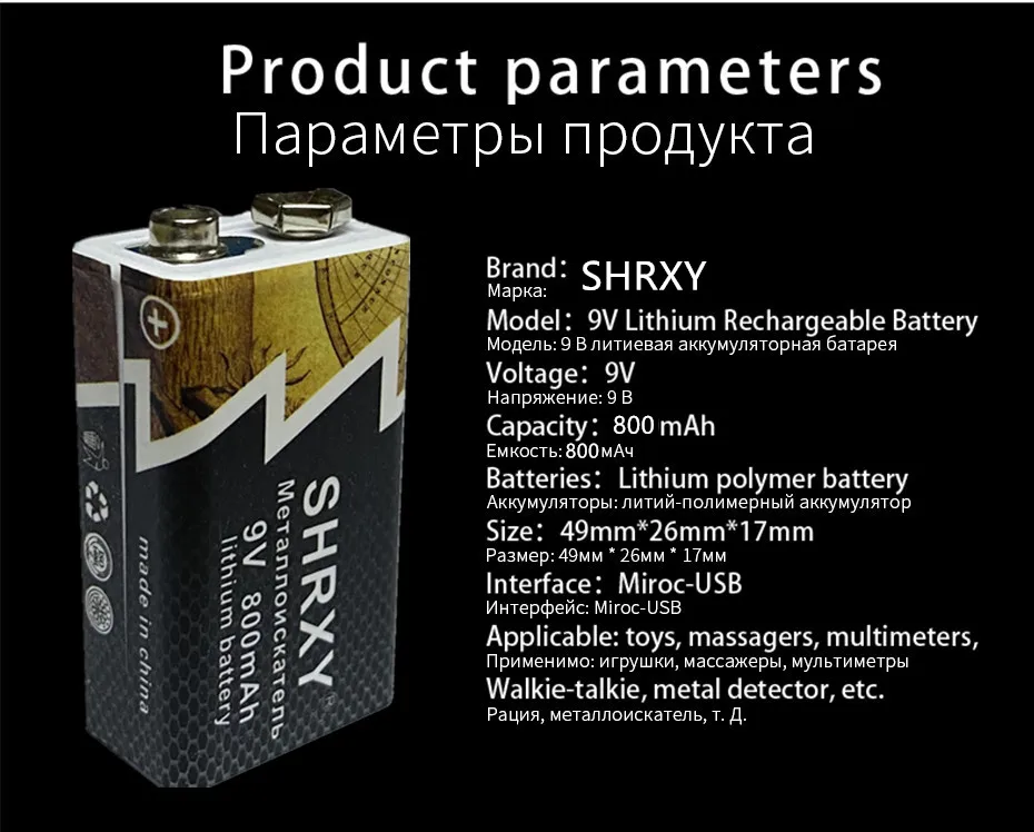 Батареи: 9 В, щелочная или перезаряжаемая батарея