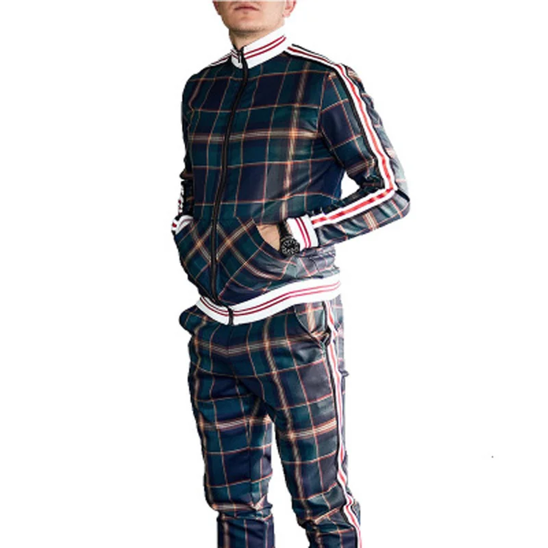 Мужской спортивный костюм весна-осень, модный клетчатый спортивный ...
