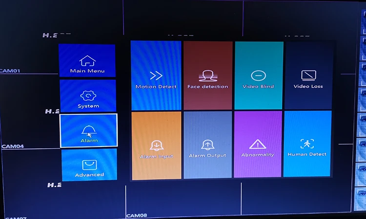 Обнаружение движения: на каждом экране можно установить 192 зон обнаружения (16*12); Можно установить многоуровневую чувствительность (ограниченный локальный канал)