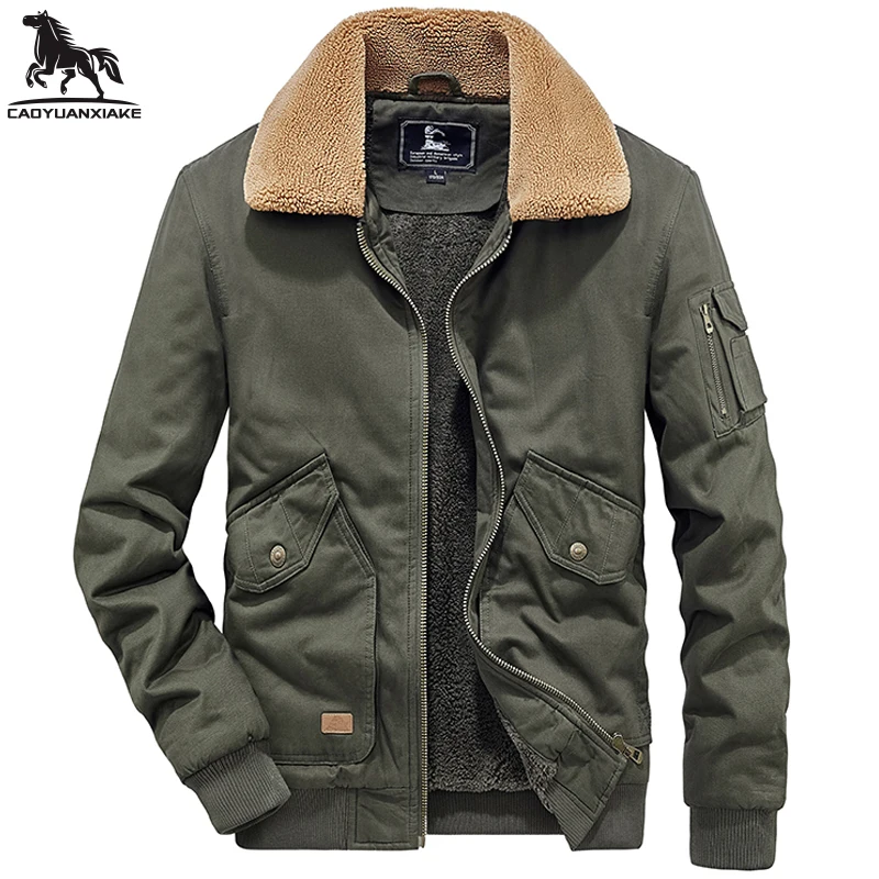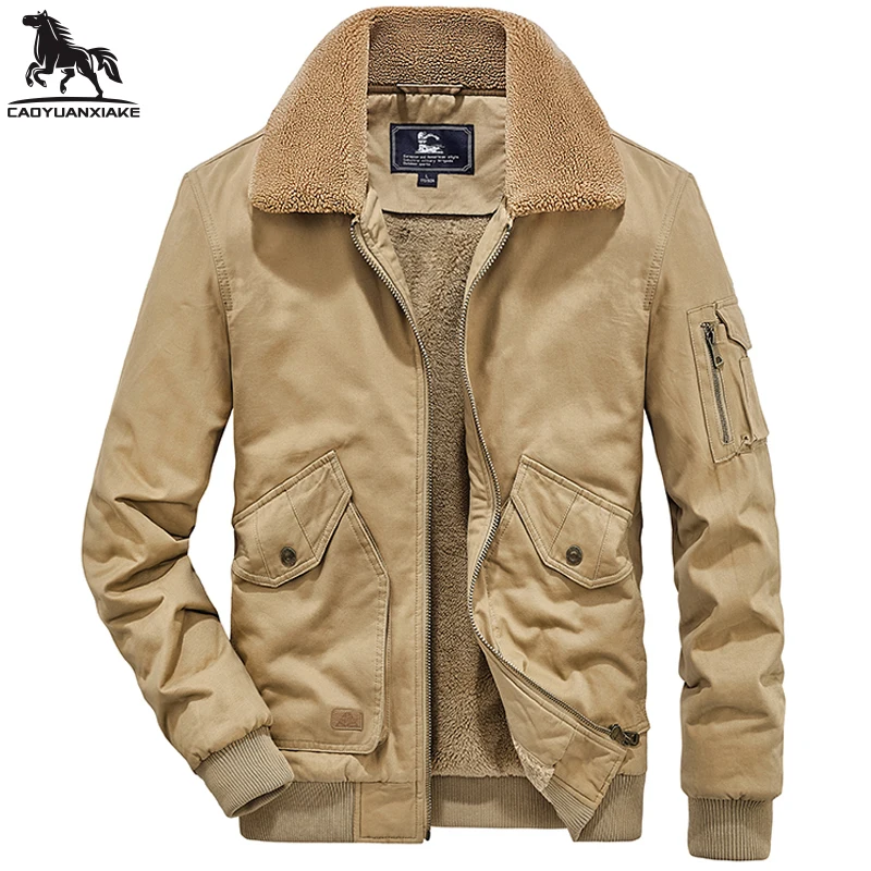 Мужская зимняя куртка из овечьей шерсти, теплая Повседневная куртка...