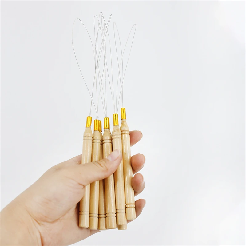 Деревянная ручка крючок игла для наращивания волос петли микро коль...