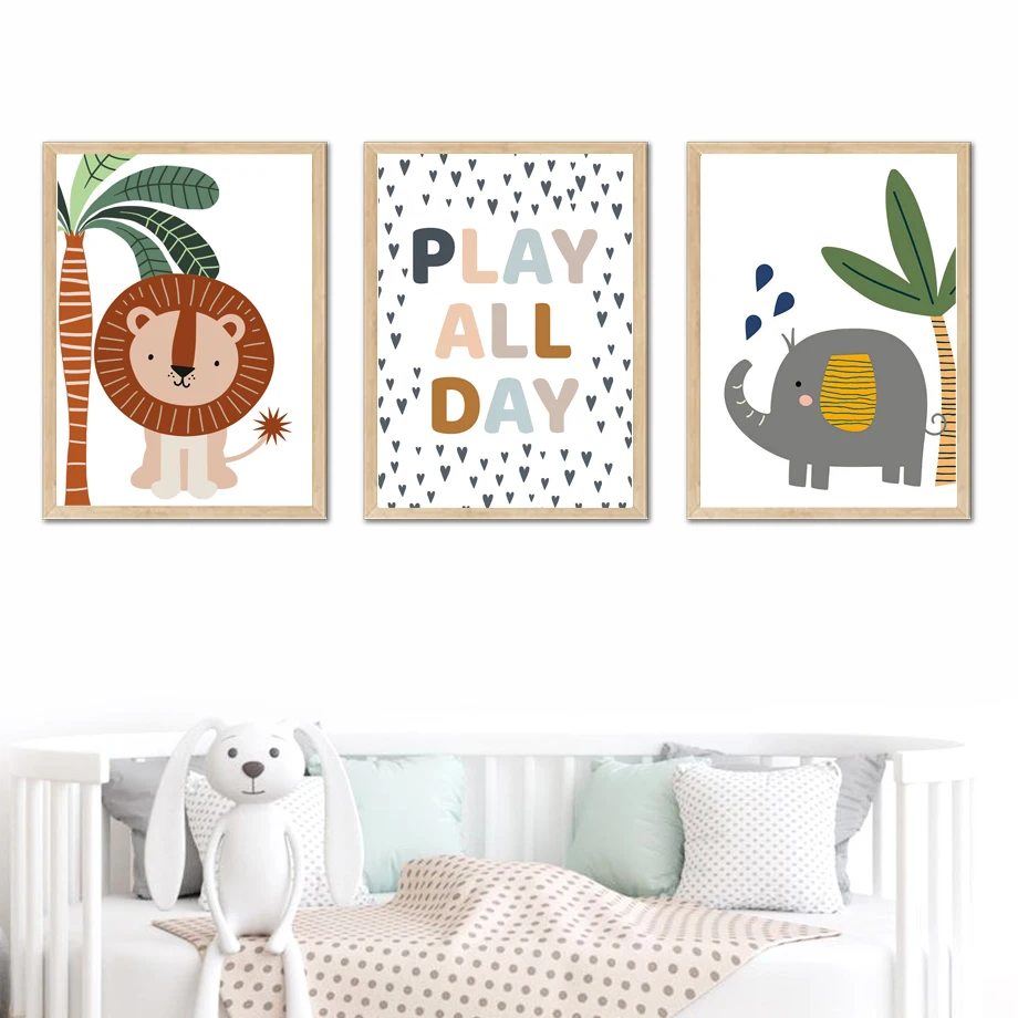 Лев, слон, жираф, обезьяна, игра, цитата, скандинавские плакаты и принты, детская художественная живопись на холсте, настенные картины, декор для детской комнатыМатериал: экологически чистый хлопокХарактеристика: солнцезащитный, водонепроницаемый, никогда не выцветает