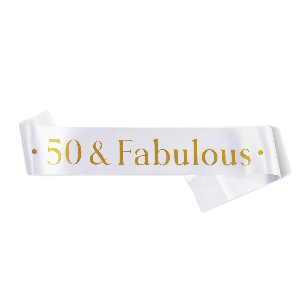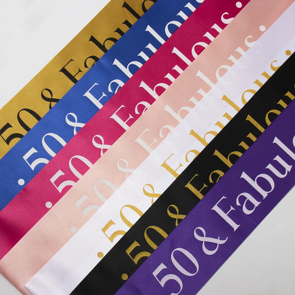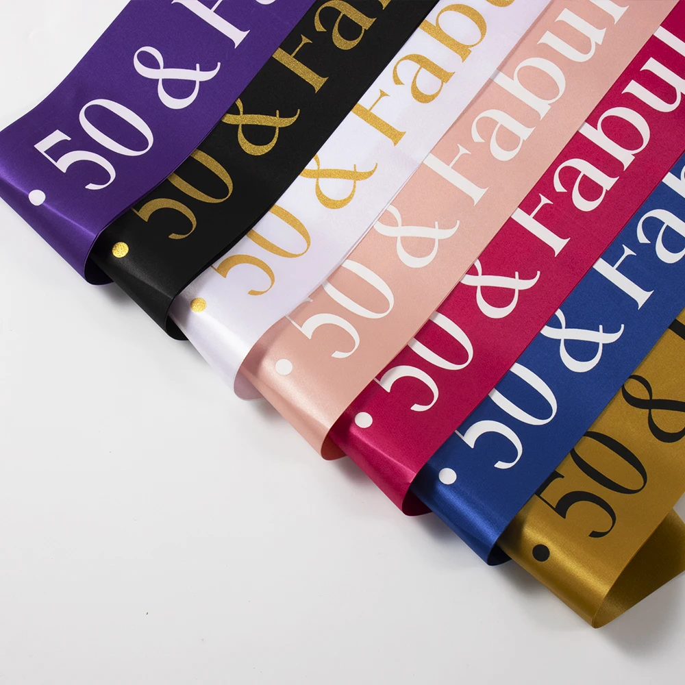 Основная информация:Название продукта: 50-я лента на вечеринку по поводу дня рожденияМатериал: сатинРазмер: 156 см * 9,5 смЦвет: 7