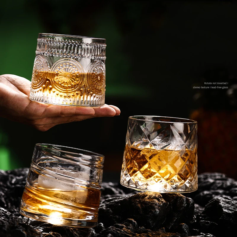 Вращающийся стакан для виски, стакан для вискишотландскогоБурбона, хрустальные очки, стакан для бара, старые модные коктейливиски