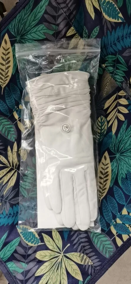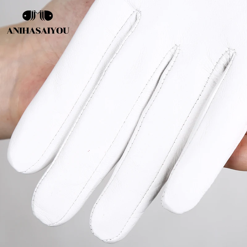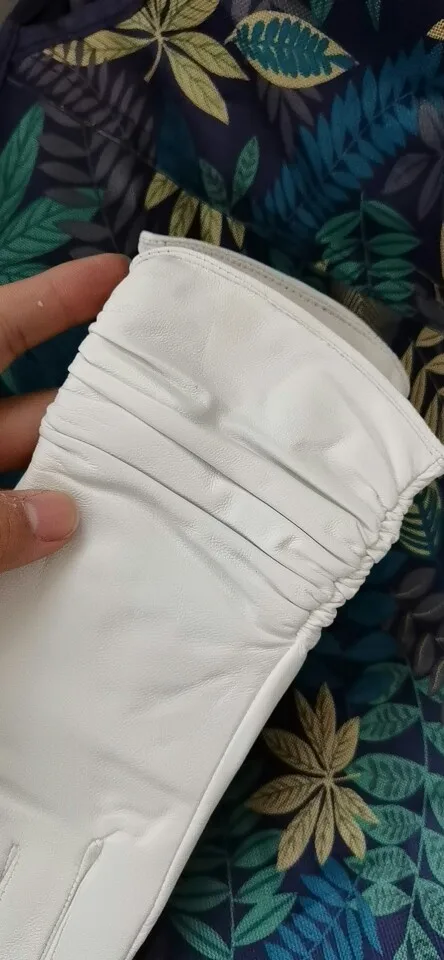 Модные белые кожаные перчатки женские из натуральной кожи белые пер...