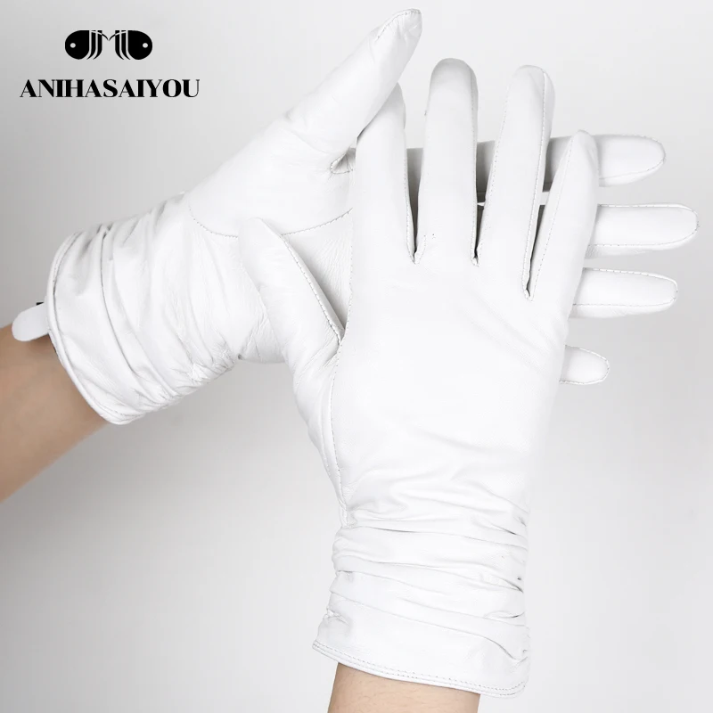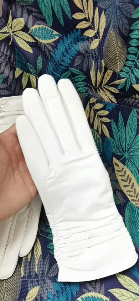 Модные удобные белые перчатки высококачественные кожаные перчатки из овечьей кожи зимние теплые белые перчатки для женщин-2081 белый