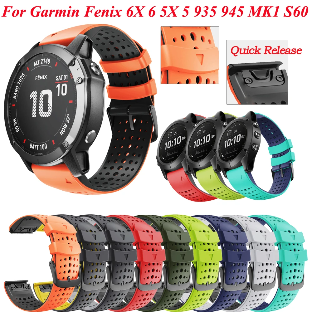 26 22 мм ремешок для часов для Garmin Fenix 6 6X Pro 5 5X 3 3HR 935 945 часы силиконовые Correa Смарт часы быстросъемный браслет