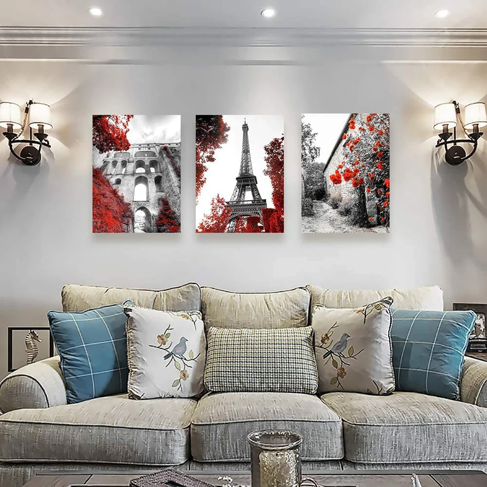 Алмазная живопись абстрактный Триптих 5d алмазная вышивка черный и белый Пейзаж Эйфелева башня 3 предмета Алмазная мозаика поделки