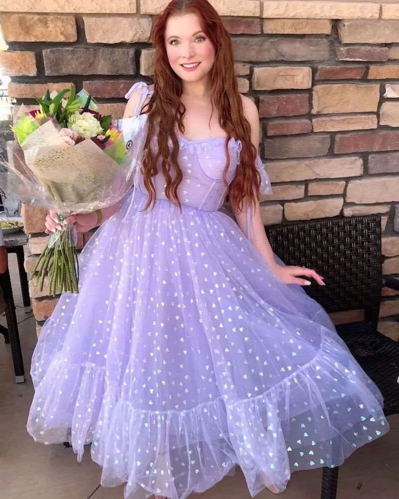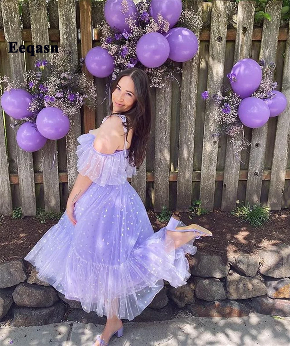 Eeqasn Лавандовый Тюль с сердцем короткие платья для выпускного вечера с открытыми плечами на бретельках платье для домашнего выпускного вечера длиной ниже колена вечерние платья
