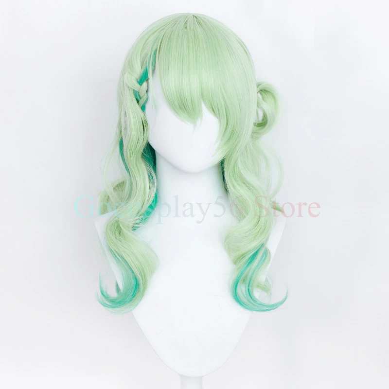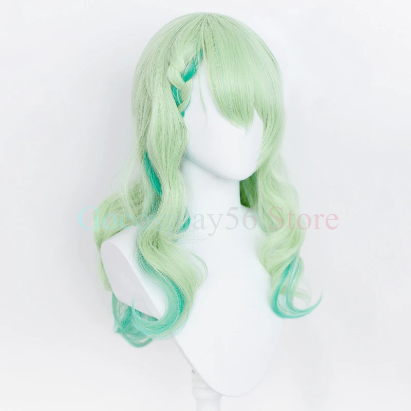 VTuber Ceres, парик для фауны Hololive, для косплея на английском языке, для девочек, с градиентом, зеленые, длинные, вьющиеся, волнистые, синтетические волосы Kawaii