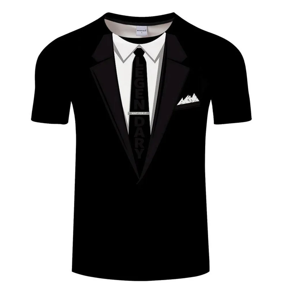 Летняя мода, поддельный костюм, 3D футболка, мужские топы с цифровы...