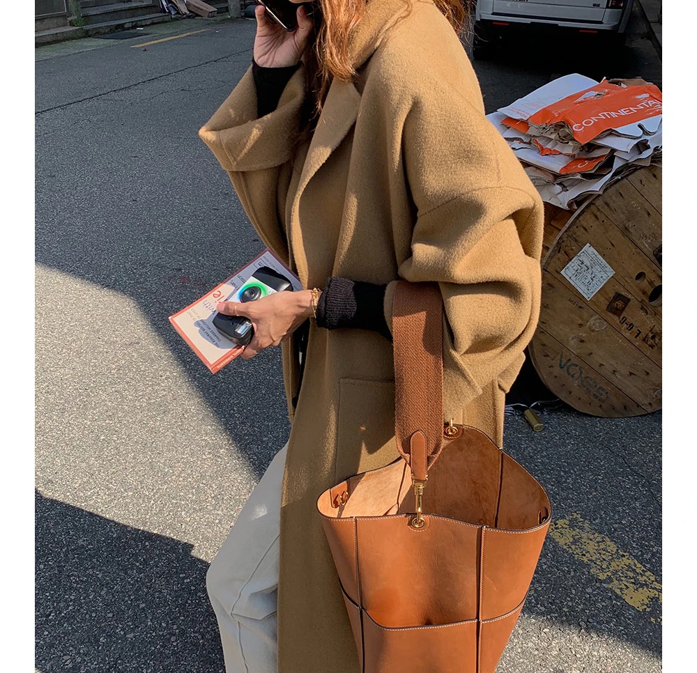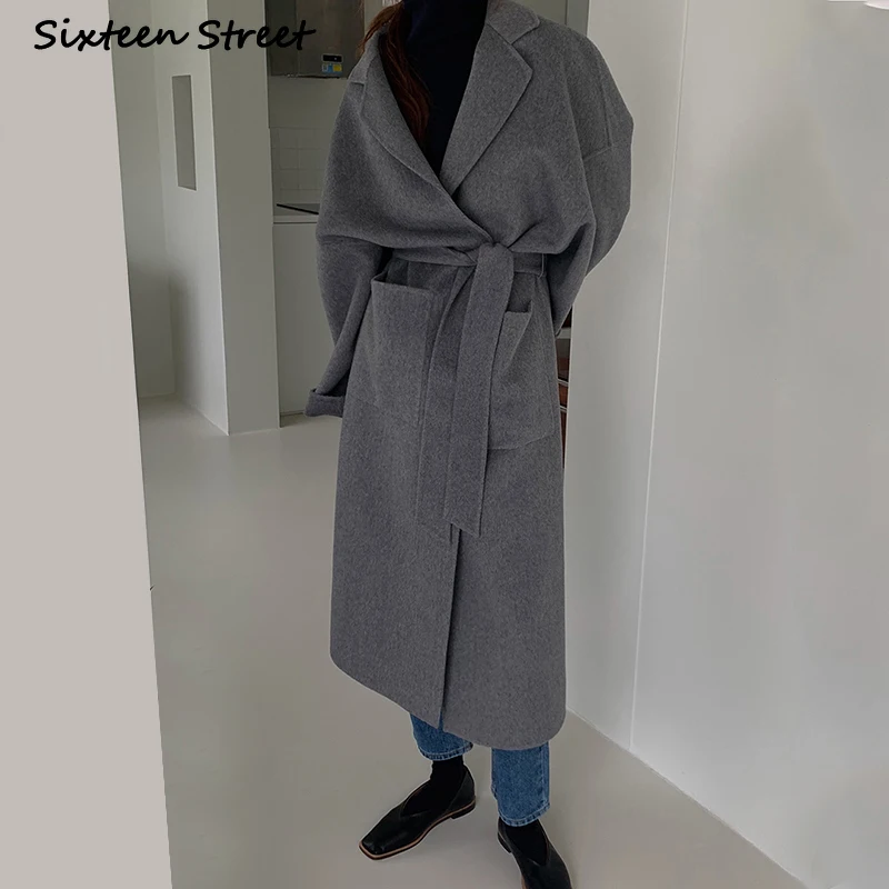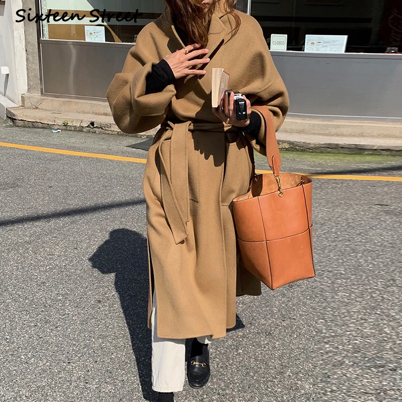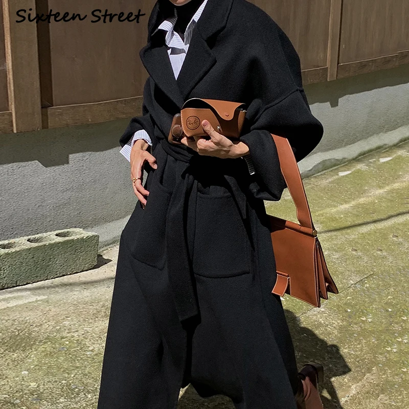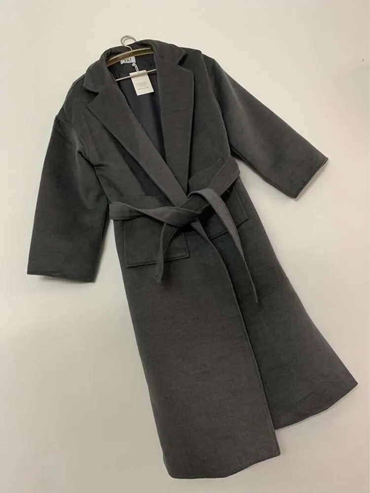 Женское шерстяное пальто с карманами, дизайнерское пальто в стиле ретро с отложным воротником, длиной и разрезом, Y2k, модная шикарная одежда в Корейском стиле для осени и зимы