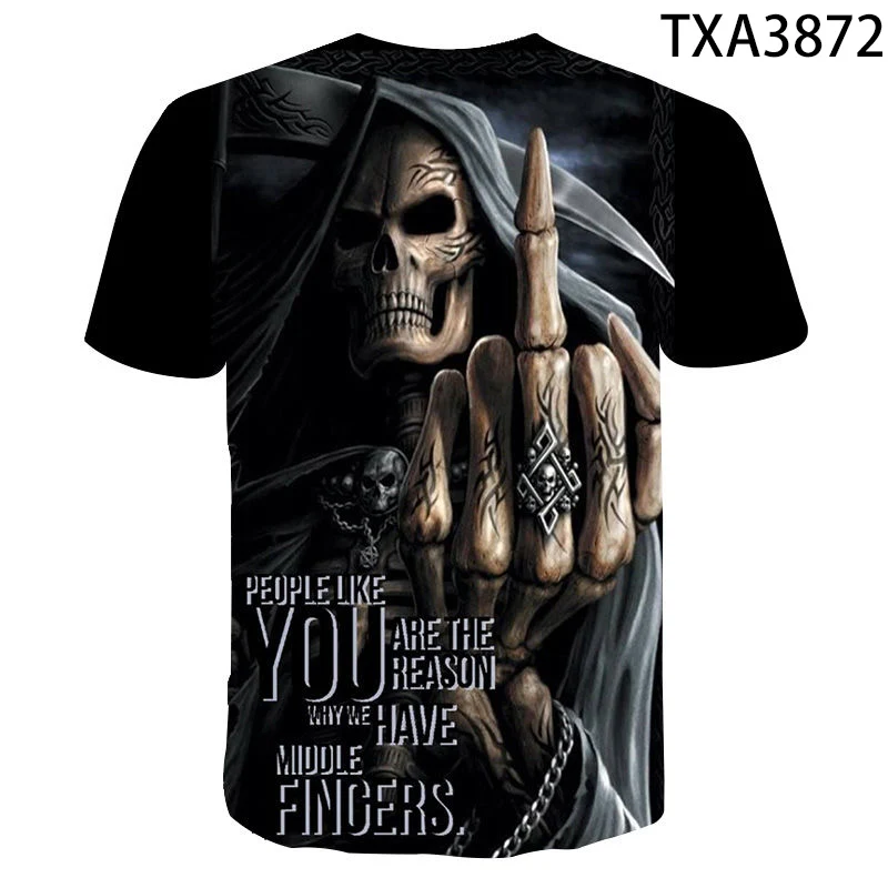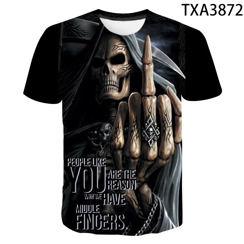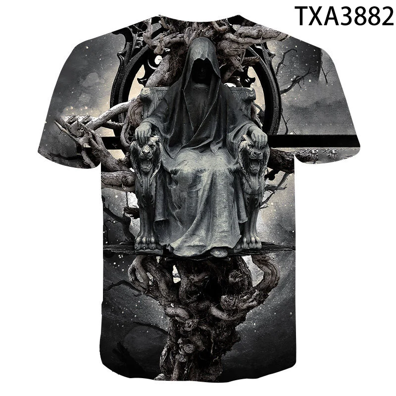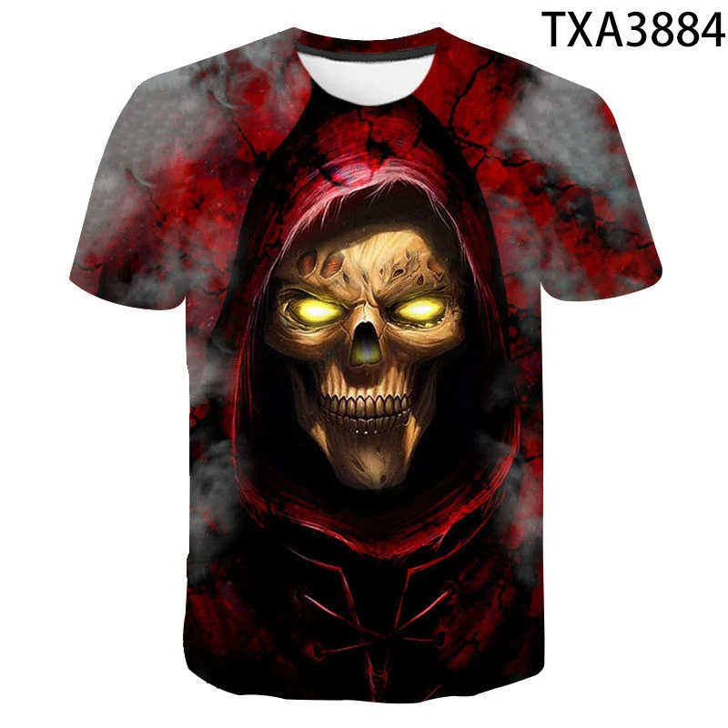 Женская и Мужская футболка, Повседневная летняя футболка с коротким рукавом и 3D-принтом скелета смерти, 2021
