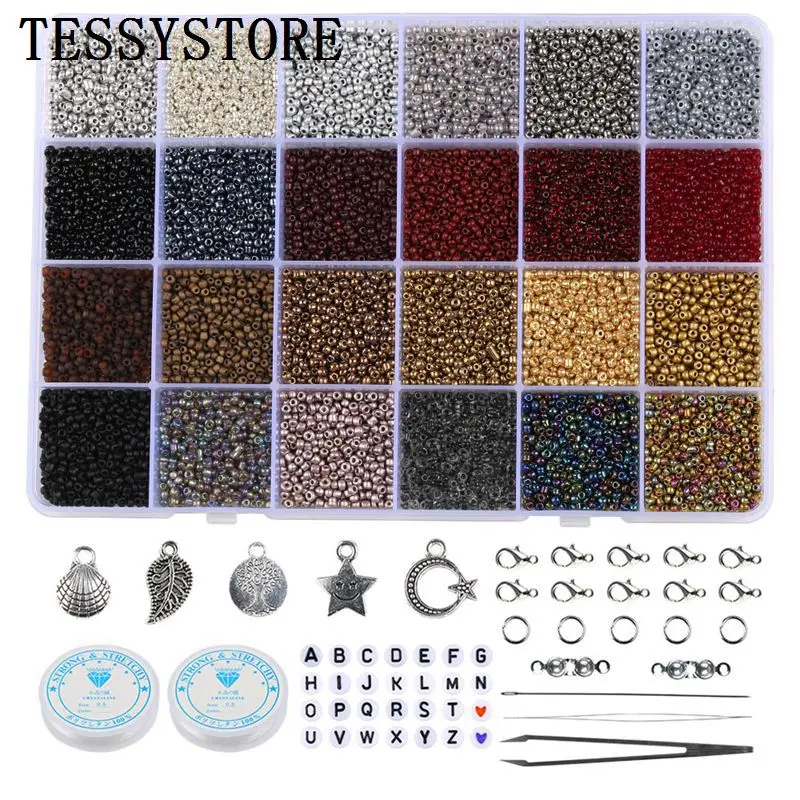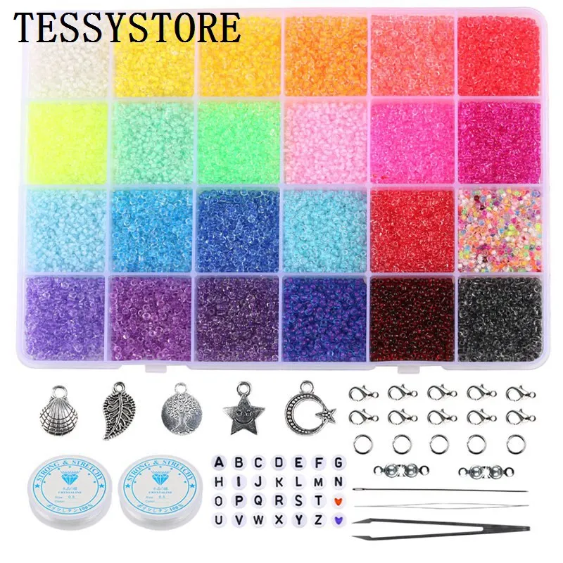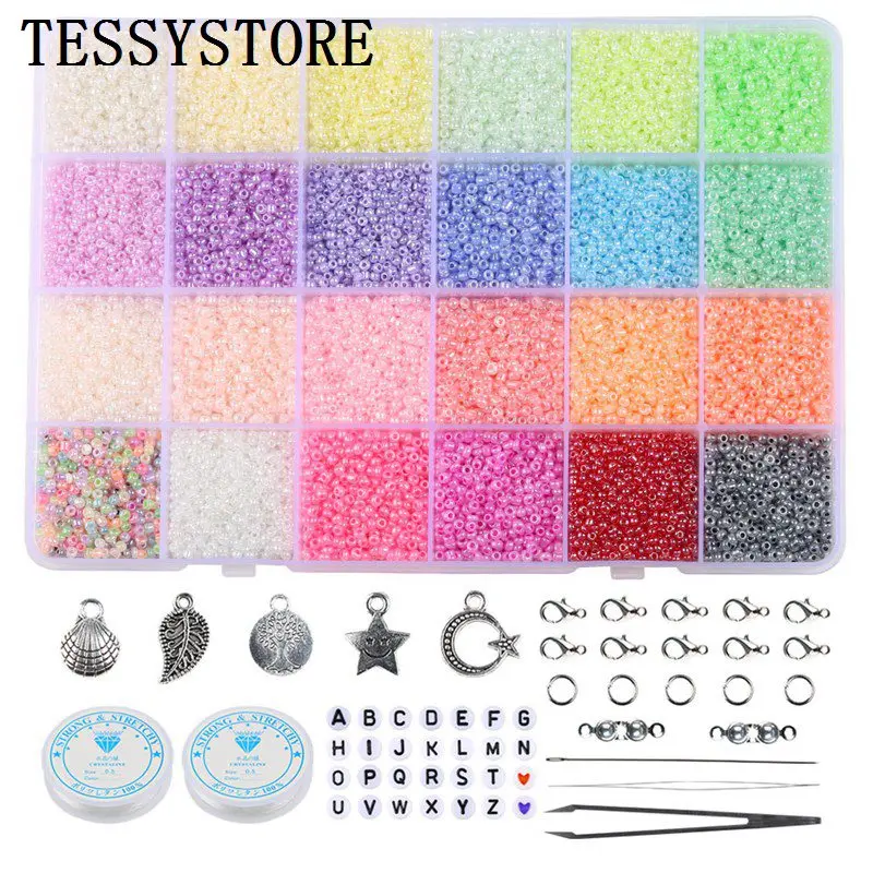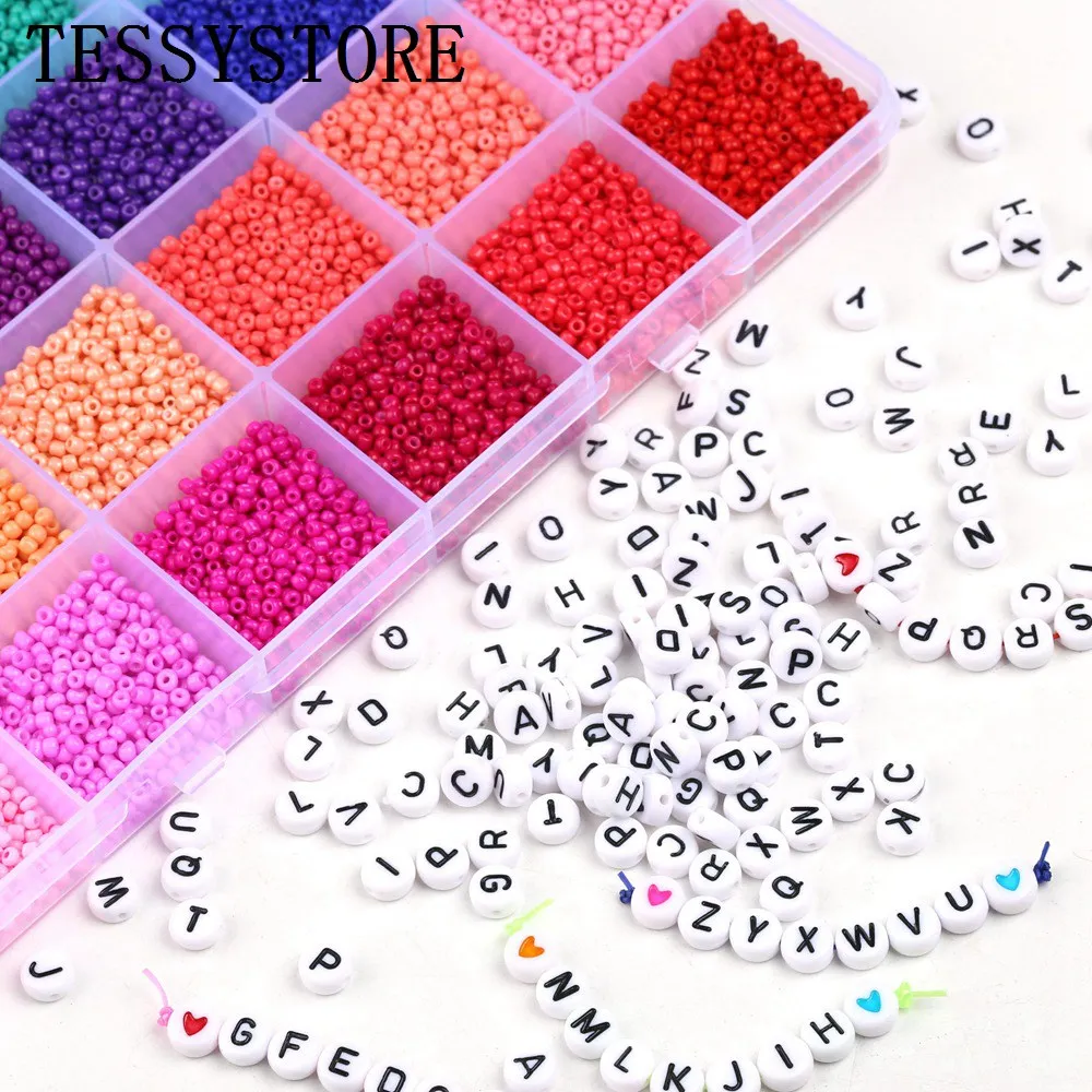 Стеклянные бусины TESSYSTORE 2 мм, набор с инструментами, алфавитные бусины для изготовления ювелирных изделий, браслетов, колец, набор аксессуаров сделай сам
