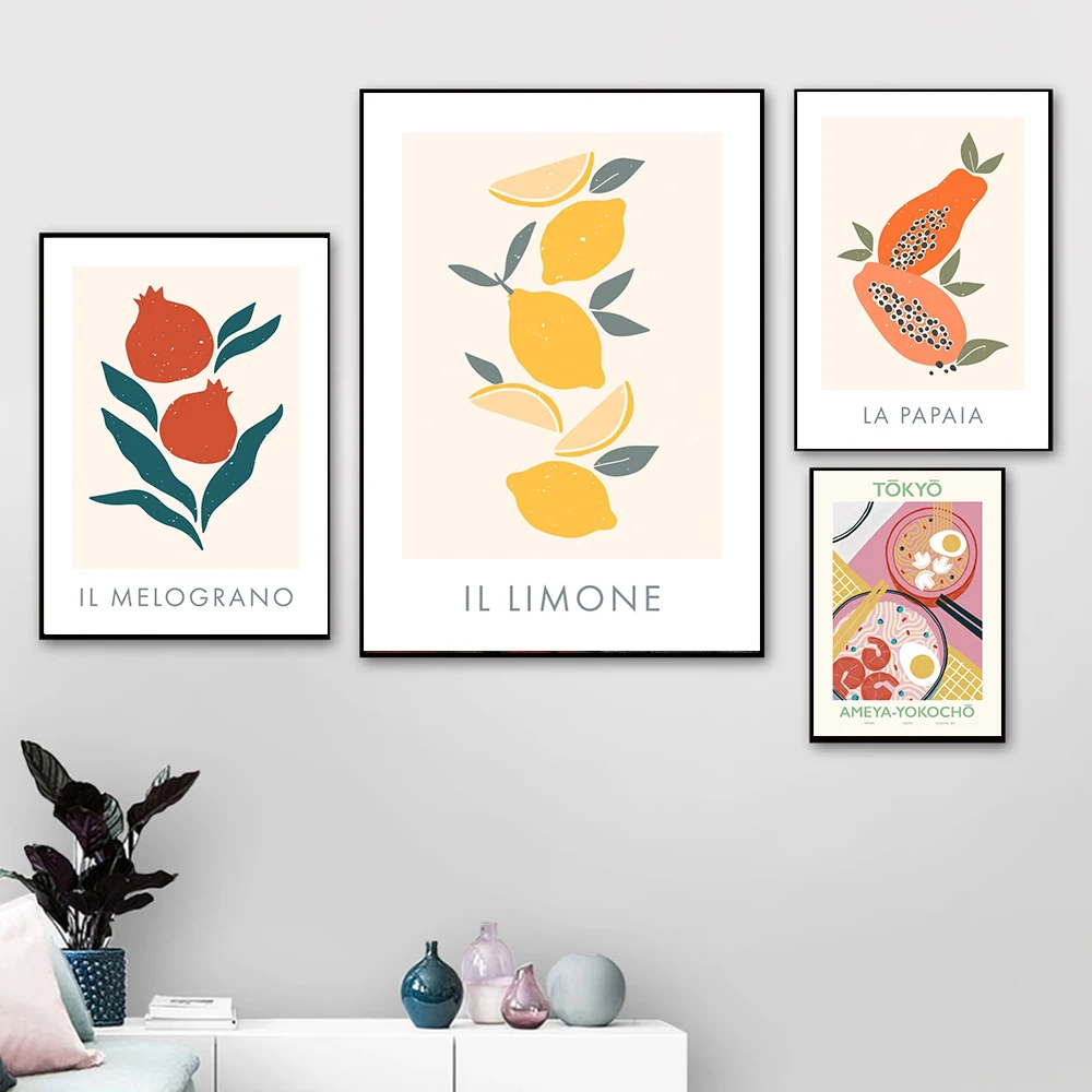 Кухня цвет фрукты еда плакат папайя лимон Холст Картина Токийский японский лапша стены искусства картина столовая домашний декор
