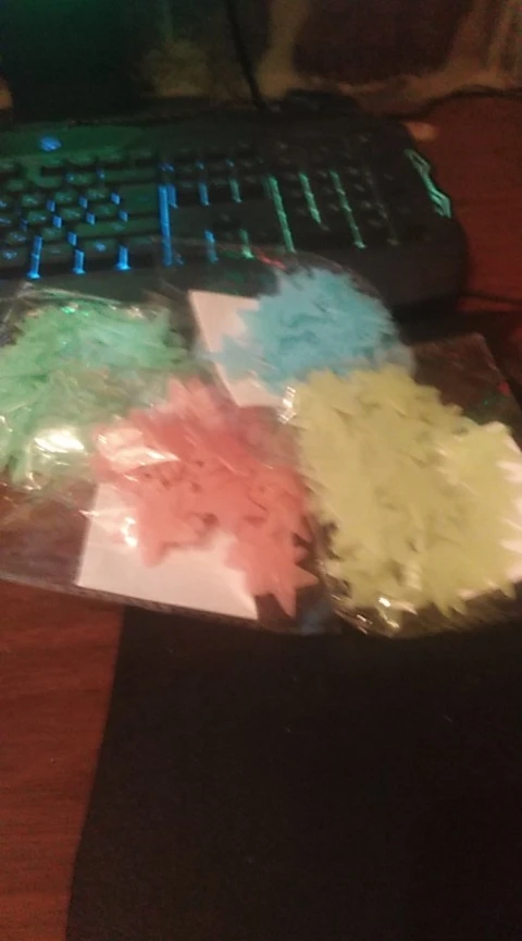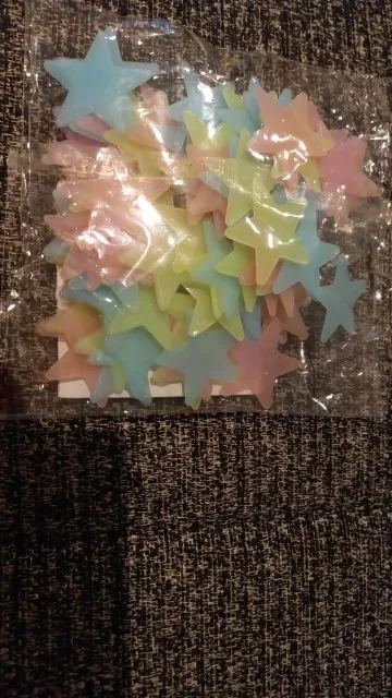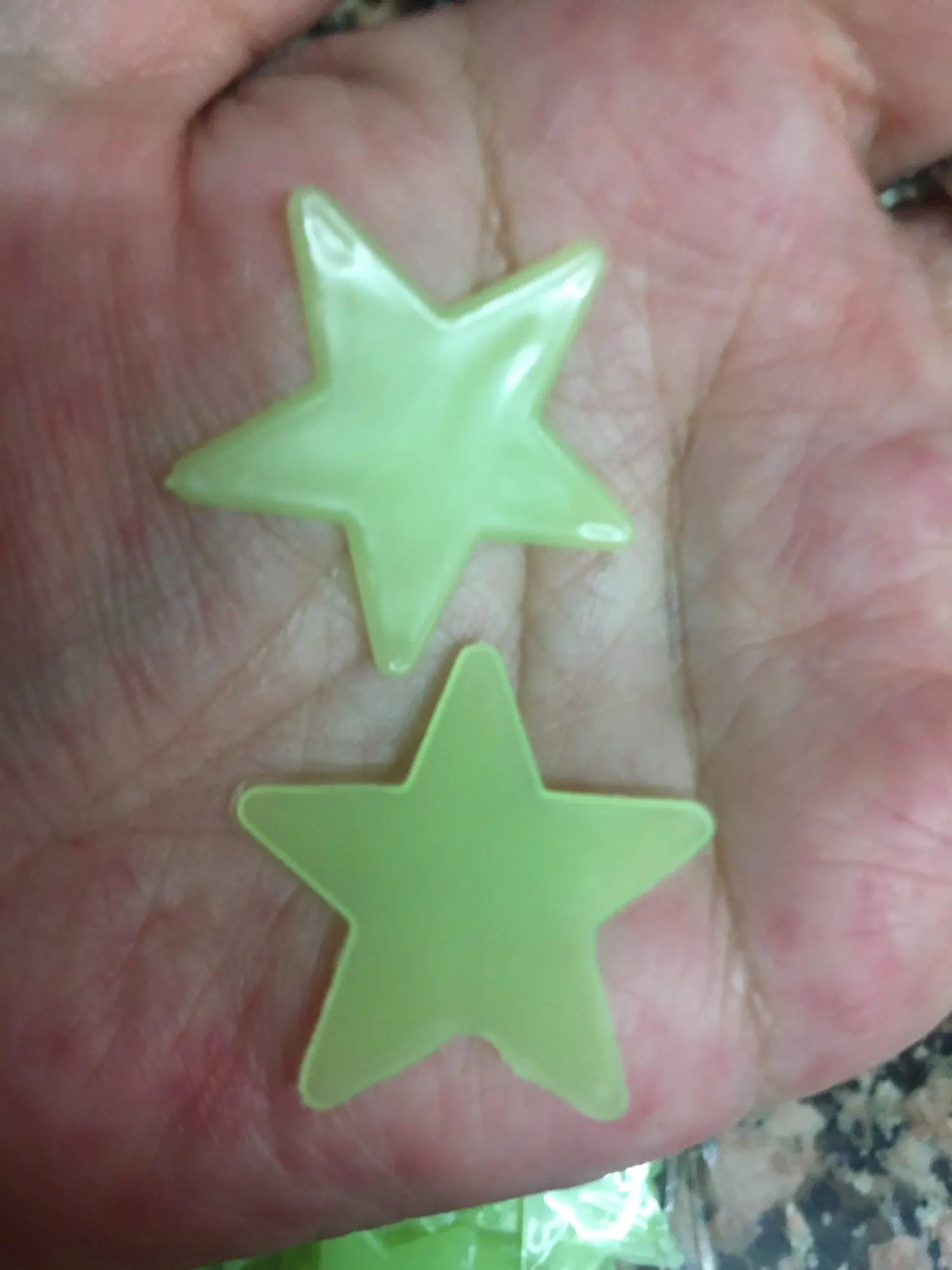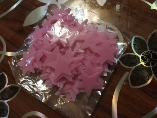 Очень хорошие звёздочки, хорошо светятся в темноте, думала будут чуть больше, но очень симпатичные.