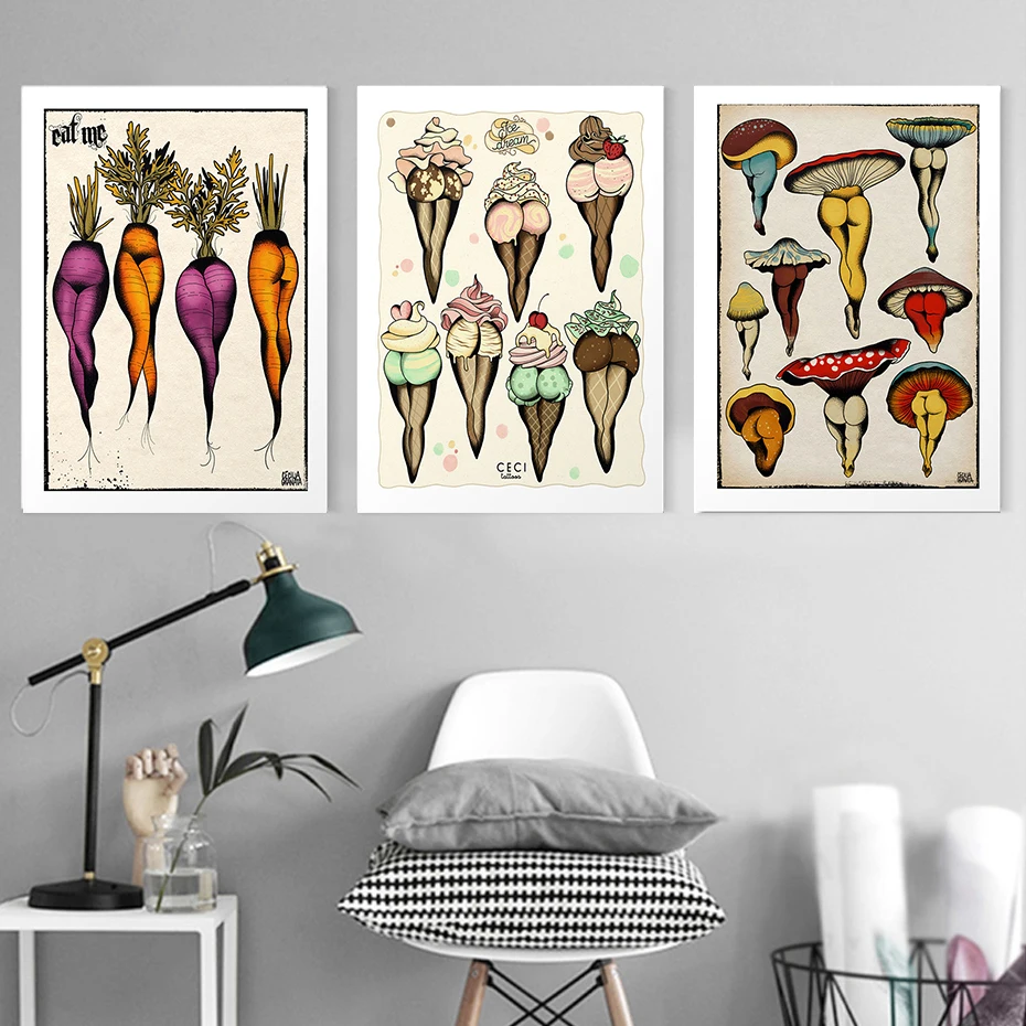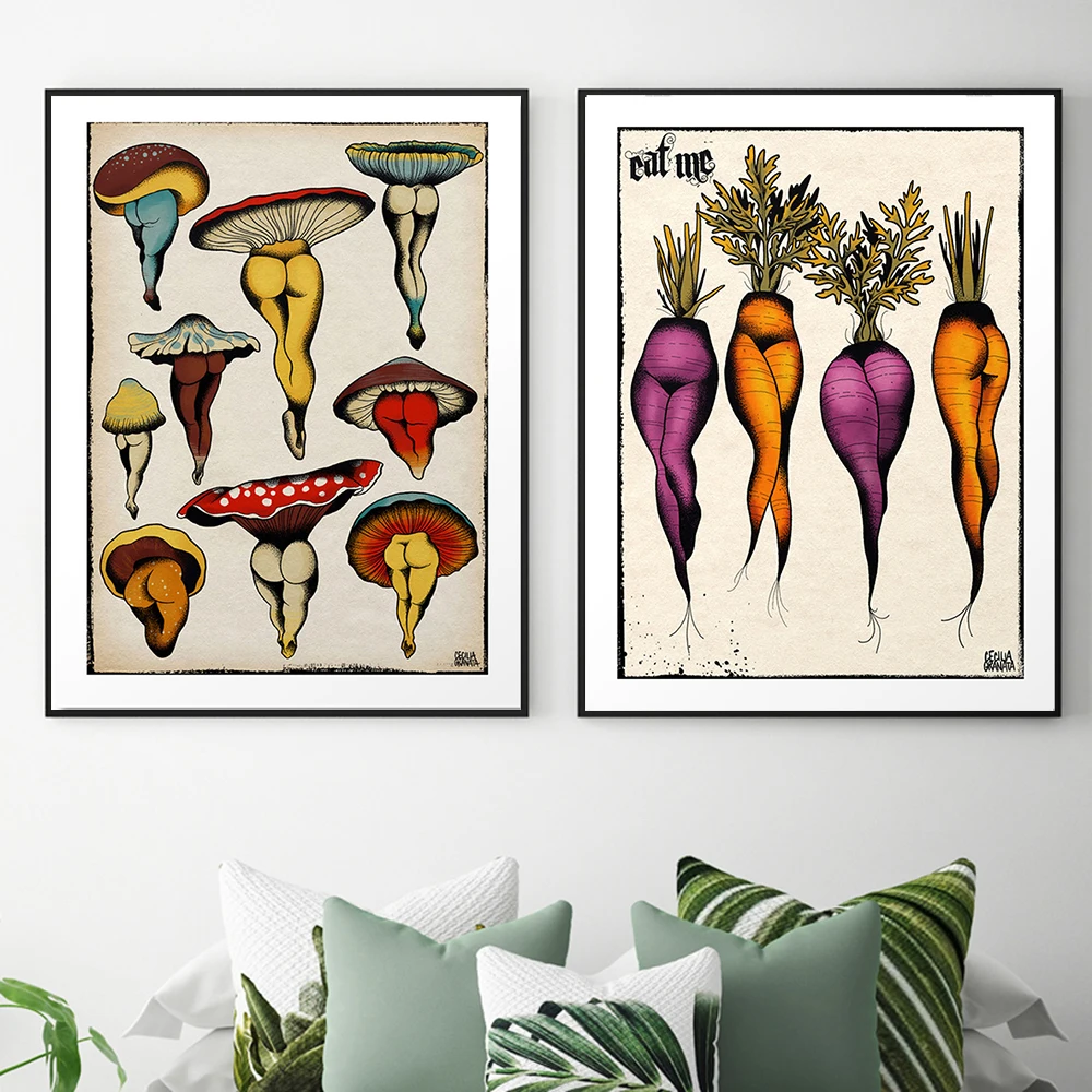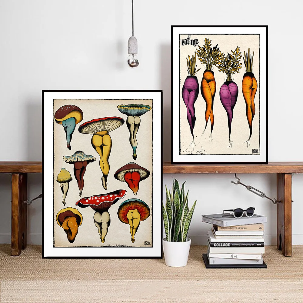 Картина на холсте, Постер и принты с изображением моркови, мороженого, грибов, ботаническая диаграмма, татуировка, Настенная картина, украшение для дома