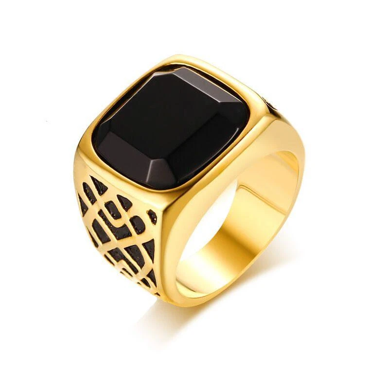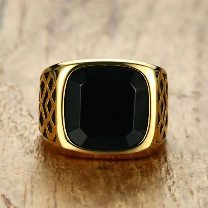 Мужское золотистое кольцо, классическое черное циркониевое кольцо п...