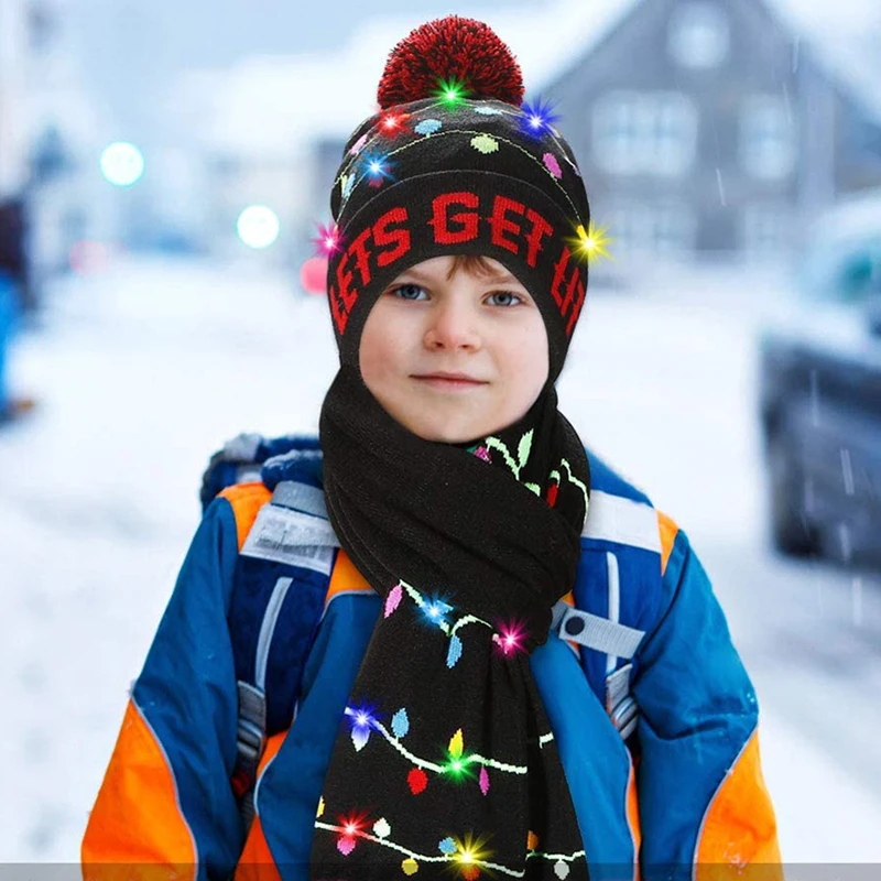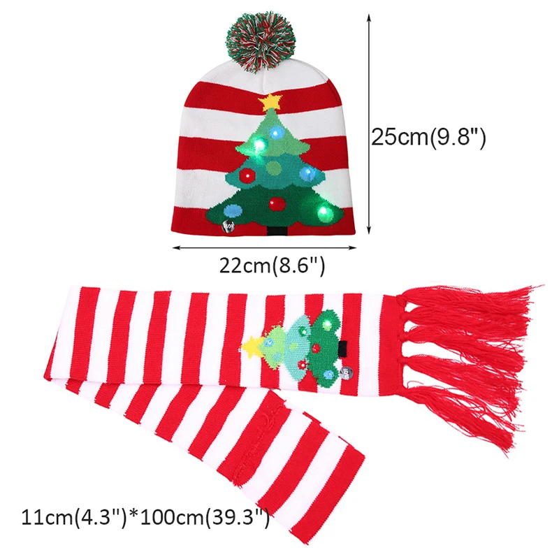 Светодиодная вязаная Рождественская шапка, шарф для взрослых и дете...
