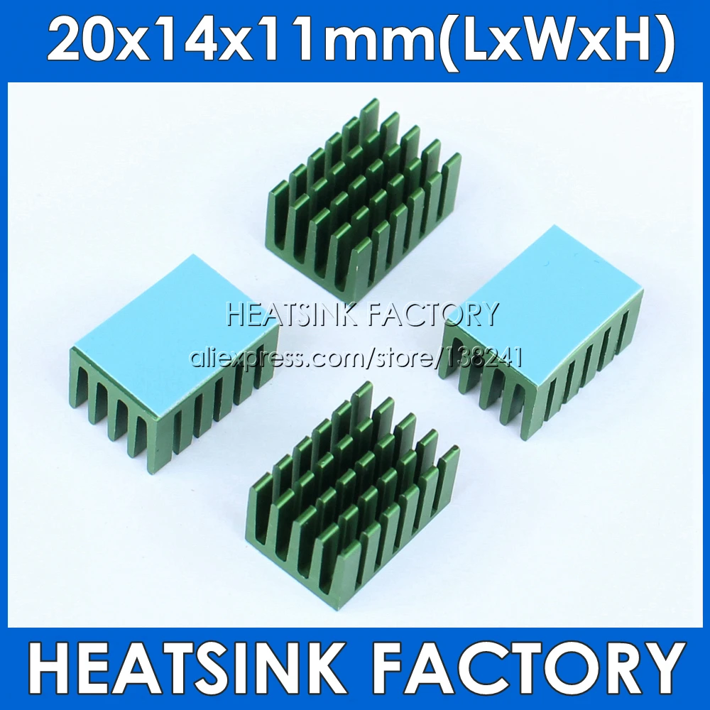 Зеленый алюминиевый Охлаждающий радиатор 20x14x11 мм, радиатор-радиатор с теплопроводящей теплопередающей двусторонней лентой