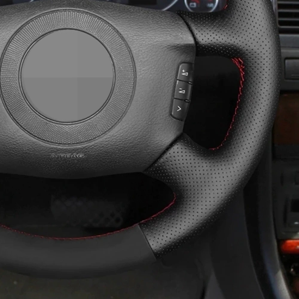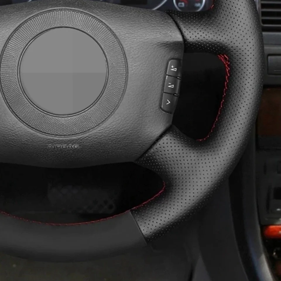 Сшитая вручную чехол рулевого колеса автомобиля Нескользящая черная...