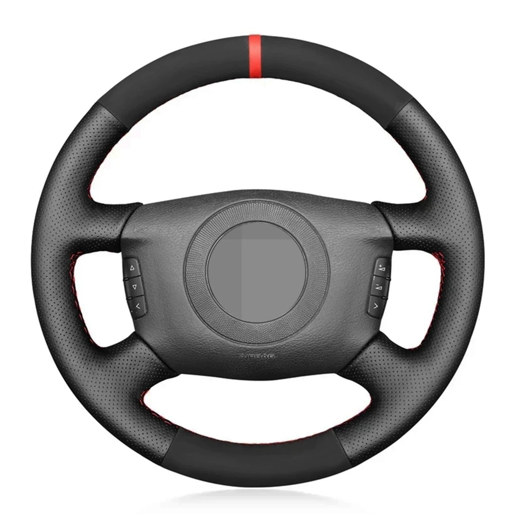 Мягкая черная замша красный маркер чехол рулевого колеса автомобиля...
