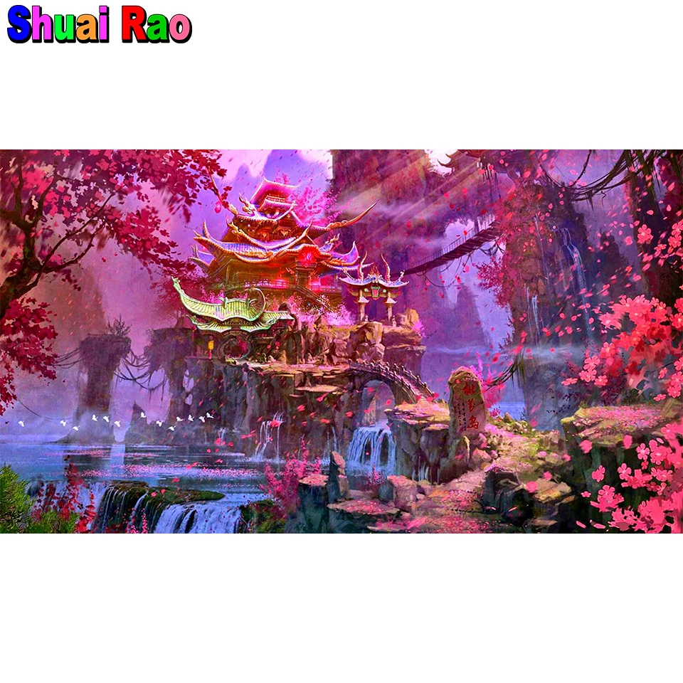 Фантазия лес японский Вишневый цветок пейзаж 5D Сделай Сам, алмазная картина полная дрель Алмазная вышивка наборы подарок домашний декор